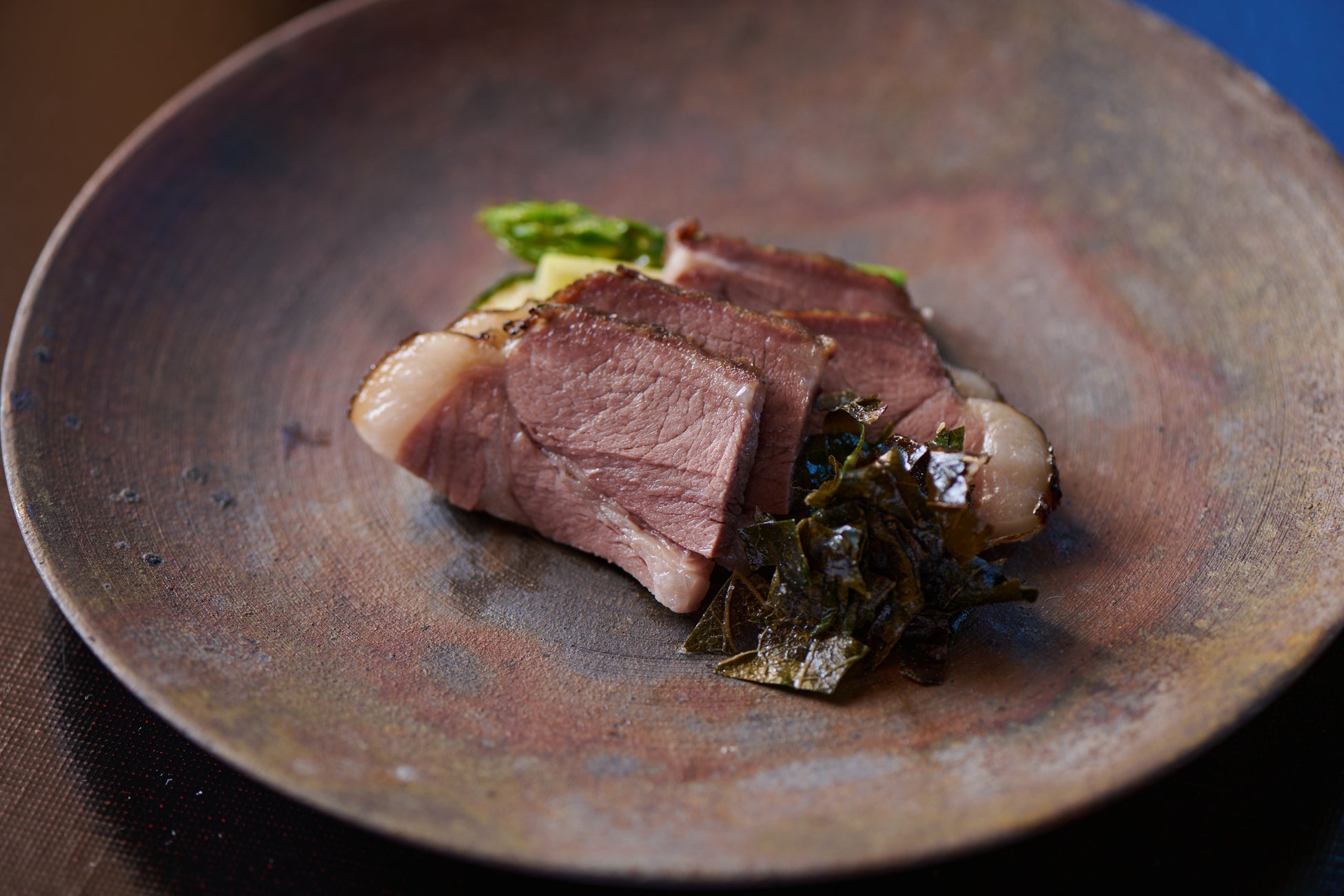 和歌山の深い森が育み、「ひなたの杜」湯川氏の類まれなる手仕事によって命を吹き込まれた猪。 それは、私たちが知るジビエの概念を軽やかに飛び越える、清らかでしなやかな美しさを纏っています。