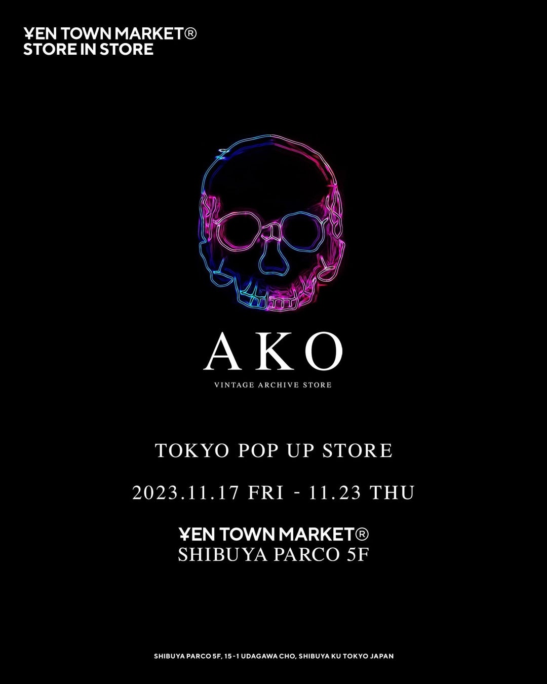 カルチャーショップ「YEN TOWN MARKET®︎」 が、海外セレブもお忍びで通うと噂のヴィンテージショップ「AKO」のPOP UP STOREを11月17日(金)~11月23日(木)の期間で開催。