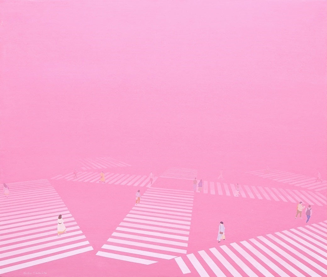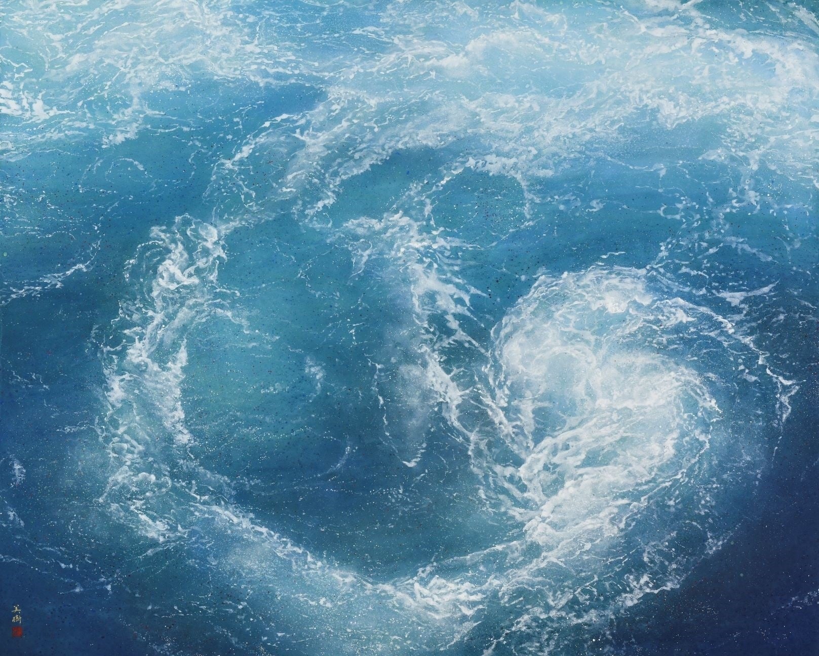 渦潮という大自然に、人間は太刀打ちできない存在であり、そこにコロナ禍の現状が重なって描いた作品です。渦潮は抽象画を描いているような気分になり、天地がどちらか分からなくなるような錯覚が面白いと思います。渦潮の世界の中にも人間の感情を描けたらいいなと願っています。