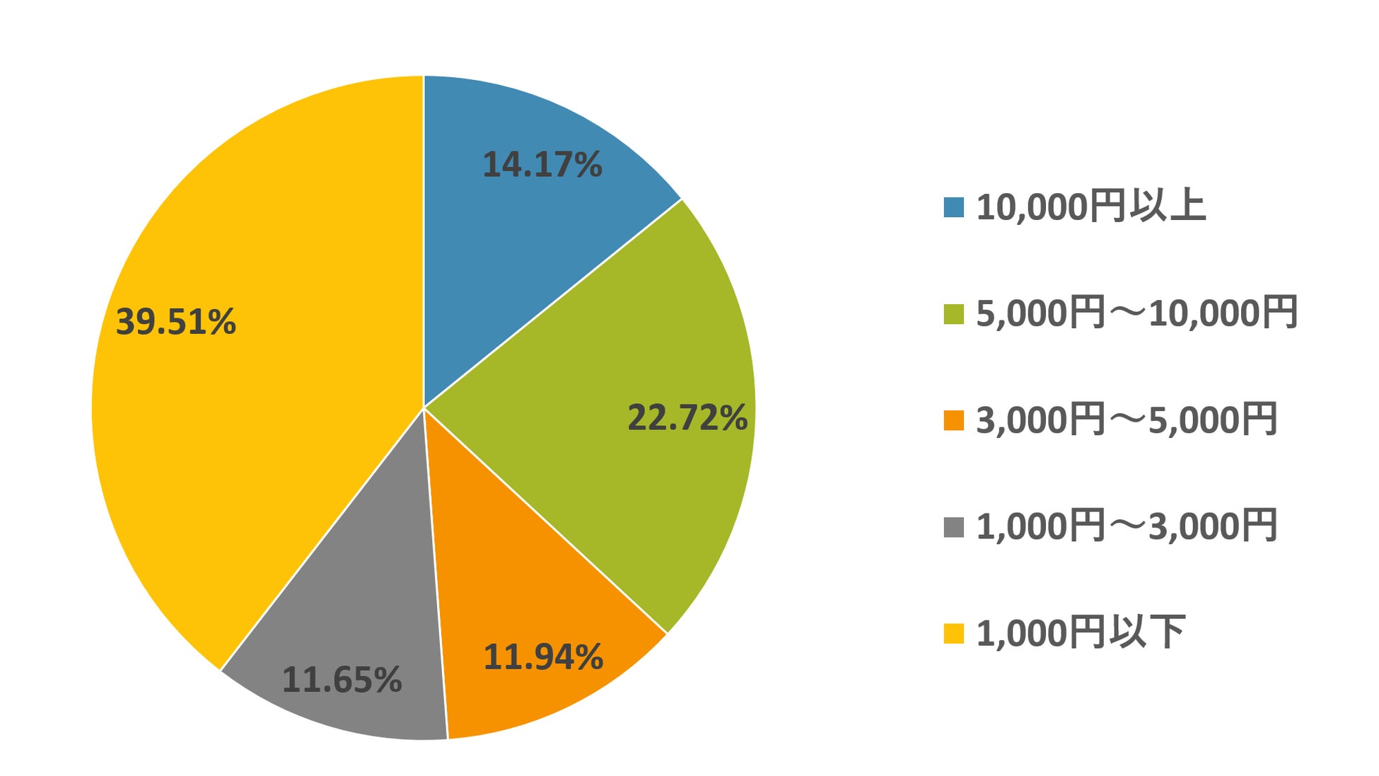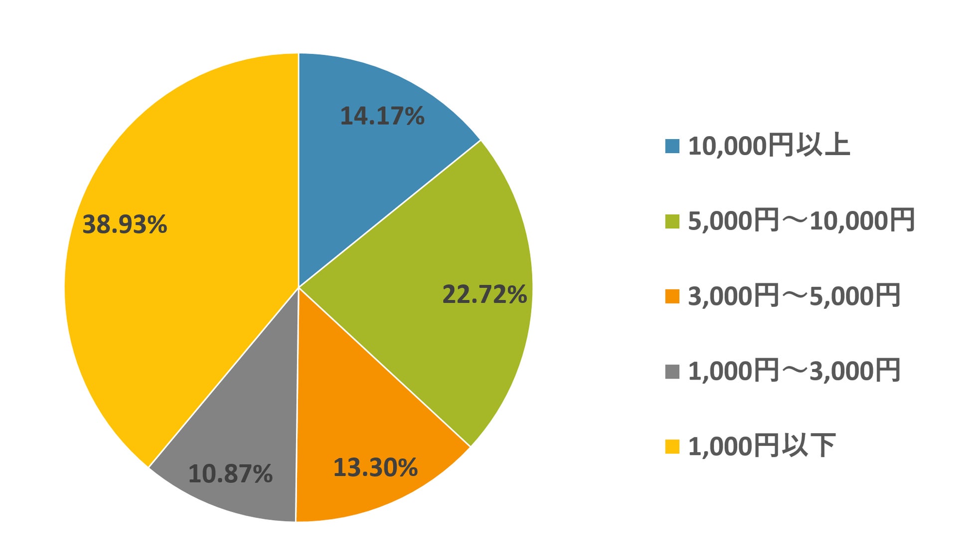 「あなたはお年玉を平均どのくらいあげていますか。」に対し、「10,000円以上(14.17%)」「5,000円~10,000円(22.72%)」「3,000円~5,000円(13.30%)」「1,000円~3,000円(10.87%)」「1,000円以下(38.93%)」と回答。