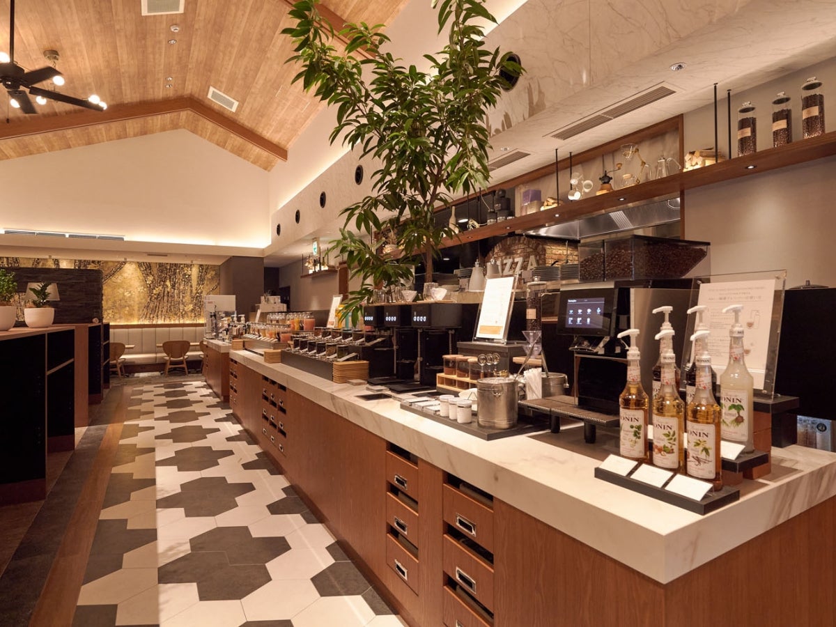 約12mの『インペリアルドリンクバー』ではドリップブリューの本格珈琲からエスプレッソアレンジラテ、12種の茶葉、更に様々なフレーバーのシロップで楽しむソーダやフルーツジュースなど、約48種の味わいをご自由にお楽しみいただけます。