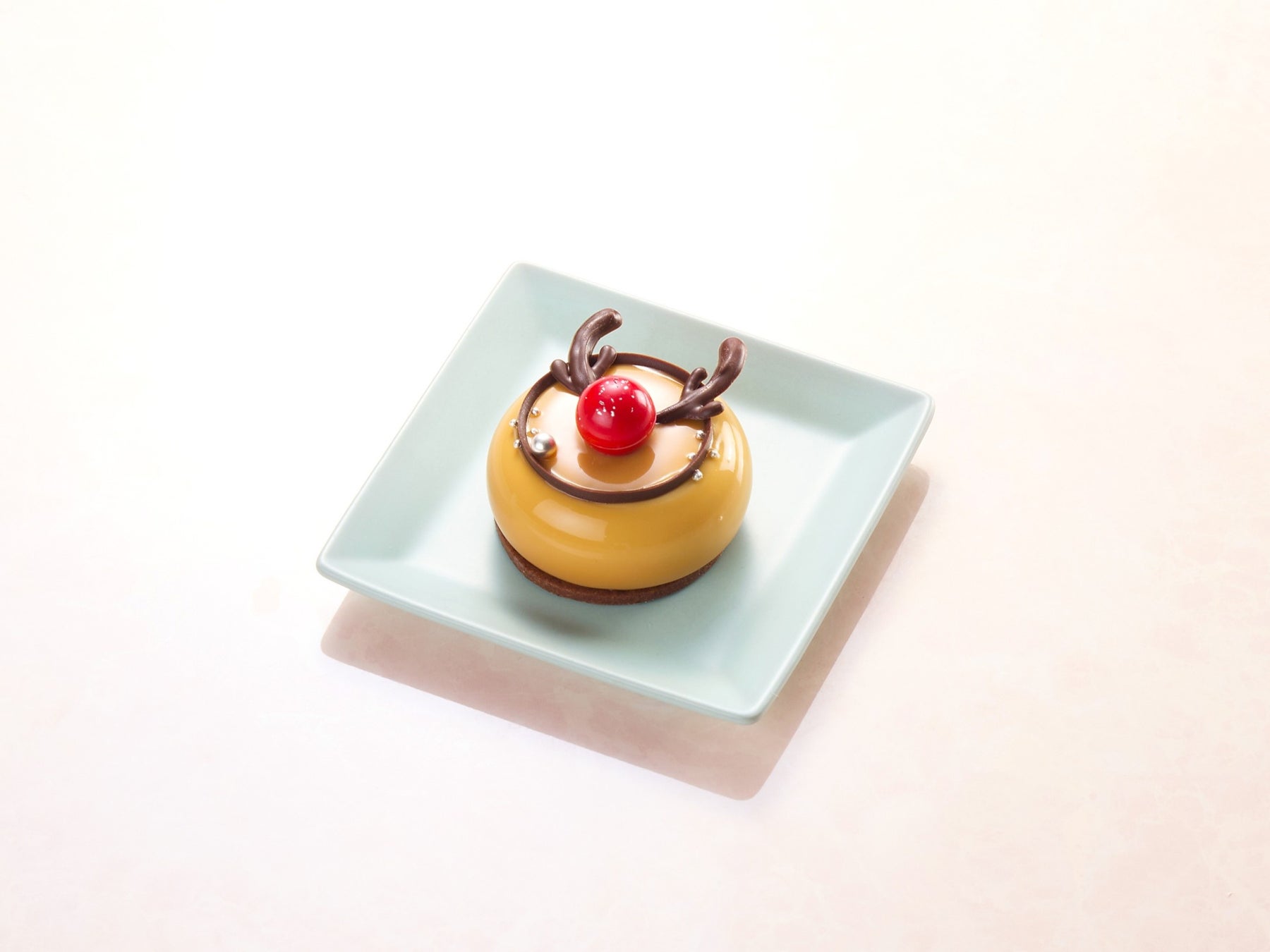ころんとした丸いフォルムが愛らしいトナカイのプティ・ガトー。チョコレートとキャラメルムース、塩キャラメルの濃厚な味わいを、芳醇なコーヒームースで優しく包みました。