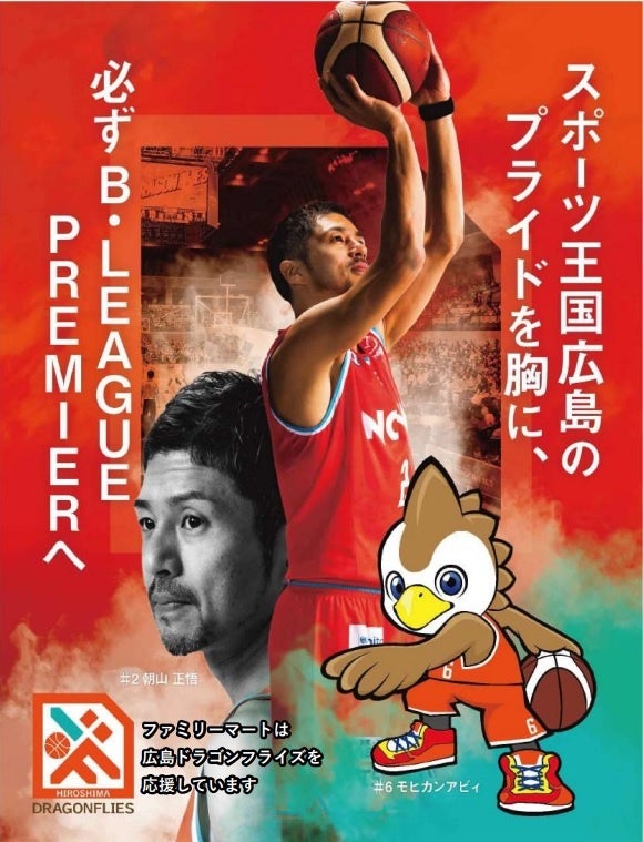 また、ファミリーマート府中町青崎東店にて除幕式を2024年1月11日(木)に実施いたします。除幕式には広島ドラゴンフライズ代表取締役社長 浦伸嘉氏、朝山正悟選手、ファミリーマート中国リージョン部長 古口孝志が参加いたします。