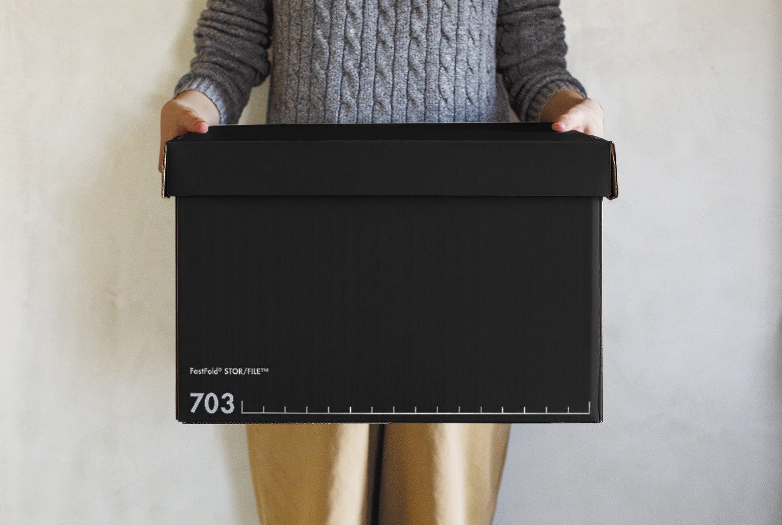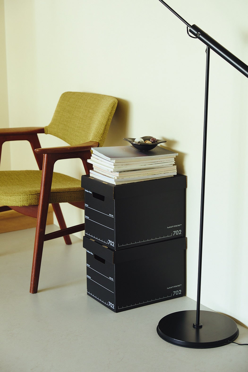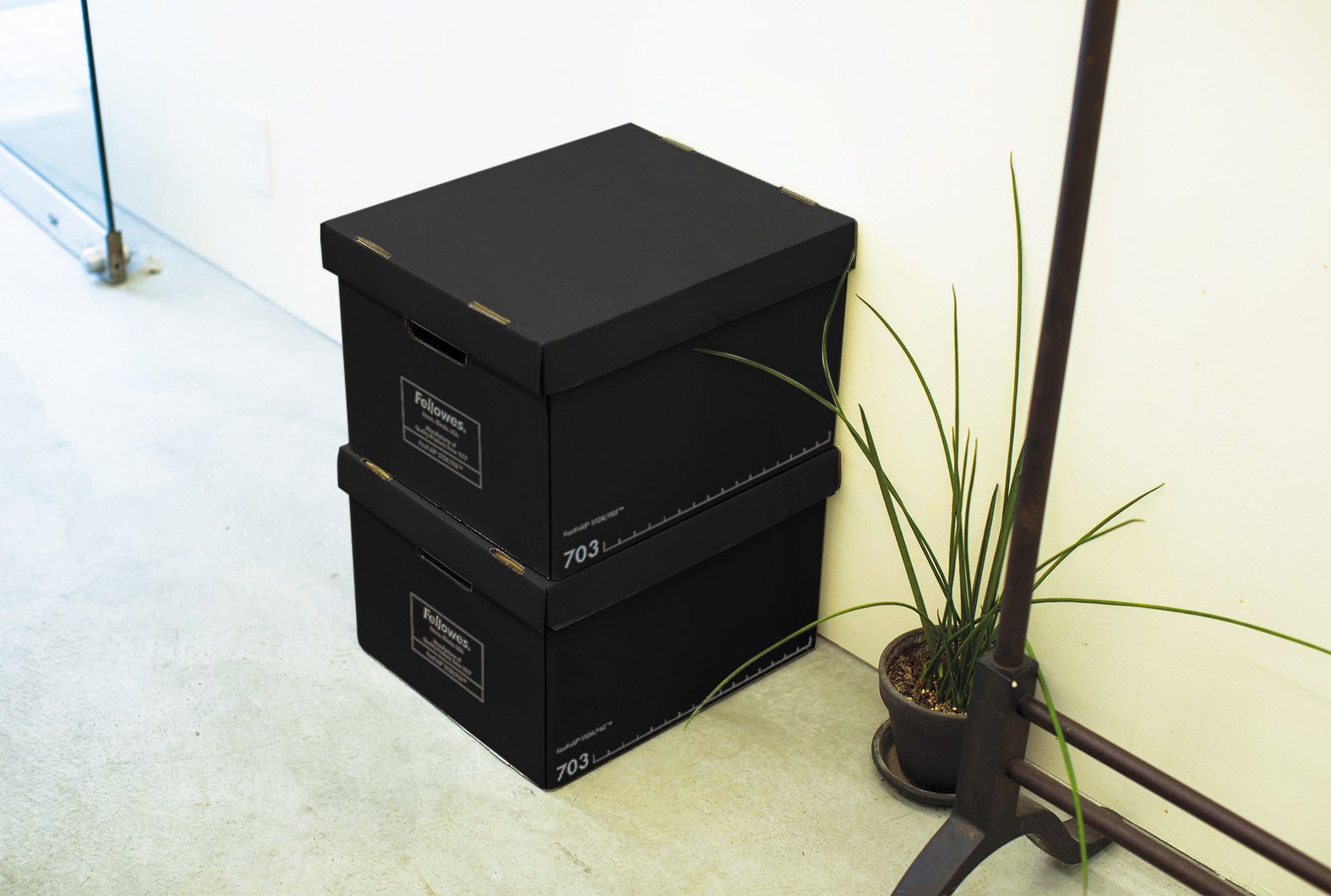 今回発売されるモデルは703sボックス、705ボックス、743sボックス、702ボックスの4種類です。703sボックスはとじ厚50mmのA4ファイルが5冊収納できる大きさで、定番のモデルとなっています。705ボックスはB4ファイルを収容することを想定した、バンカーズボックスシリーズで最も大きいモデルです。743sボックスは定番の703sボックスの高さが半分になったモデルで、家具の上やクローゼットのデッドスペースなど、狭い収納場所を有効活用することができます。702ボックスは今回初めて発売されるモデルで、703sボックスと比べてひとまわり小さいサイズです。こちらはホワイトカラーとフルブラックの2色発売いたします。