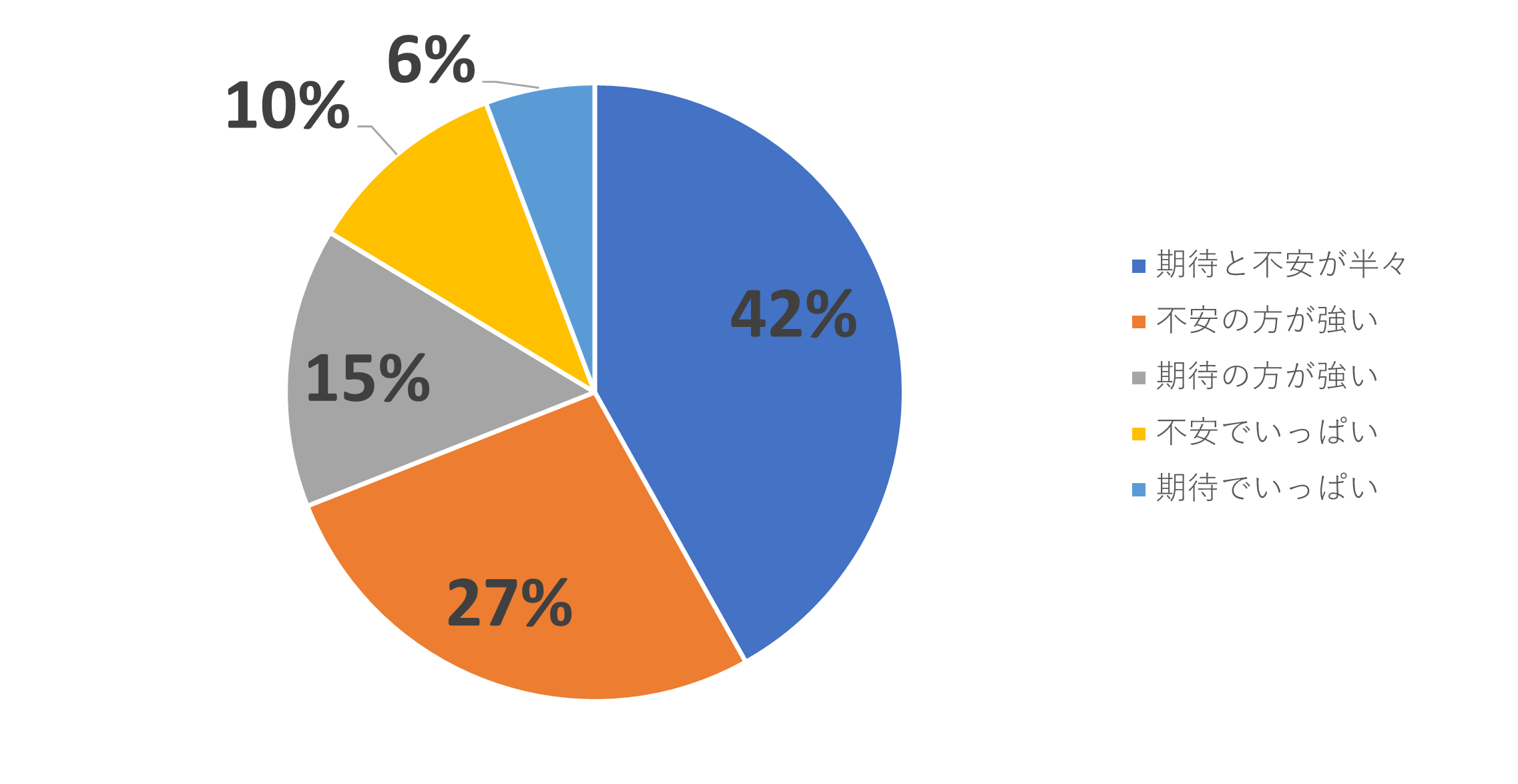 1.期待と不安が半々が4割。期待する気持ちが強い人は全体の2割程度で大半は不安な気持ちが強くなっている。