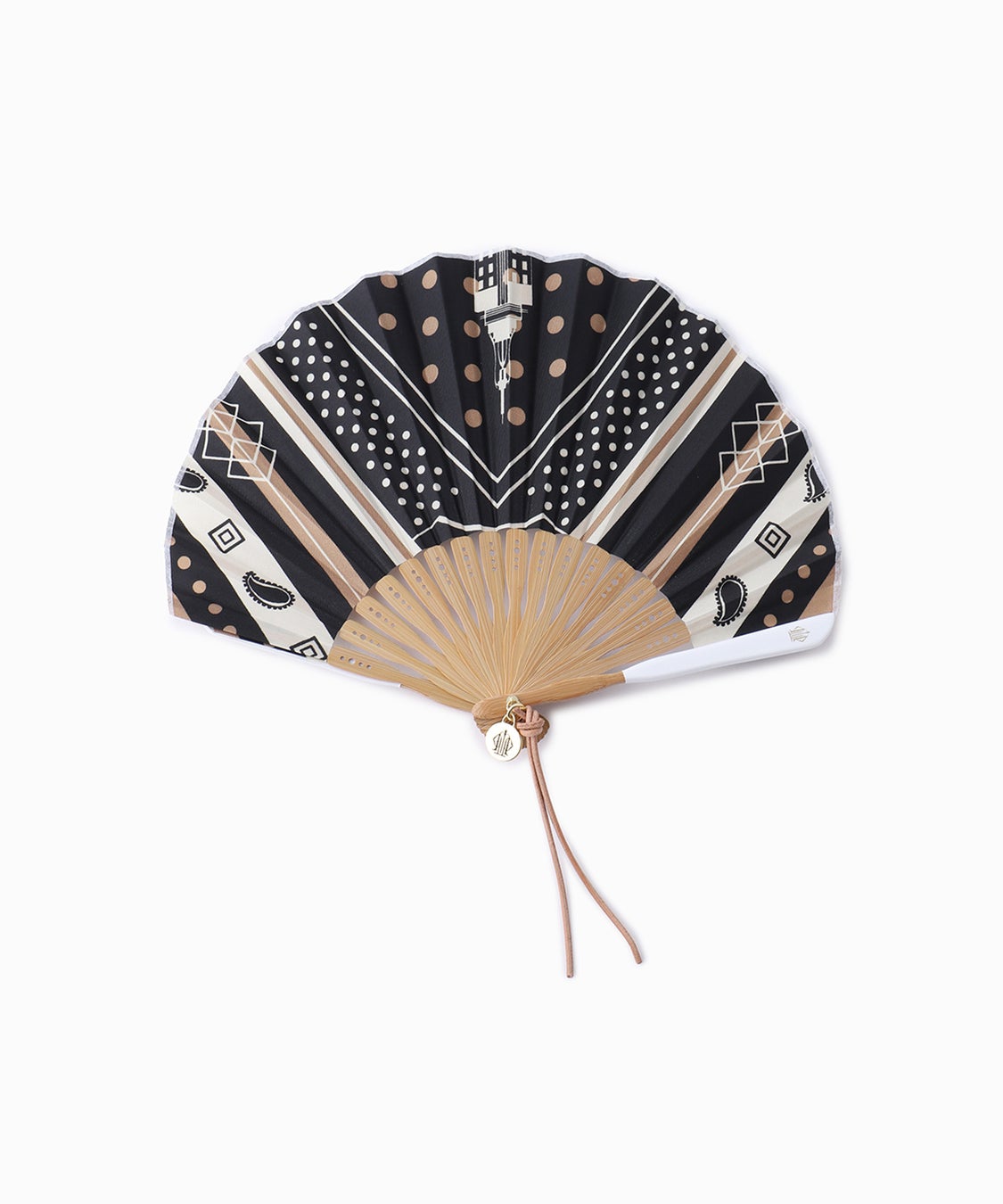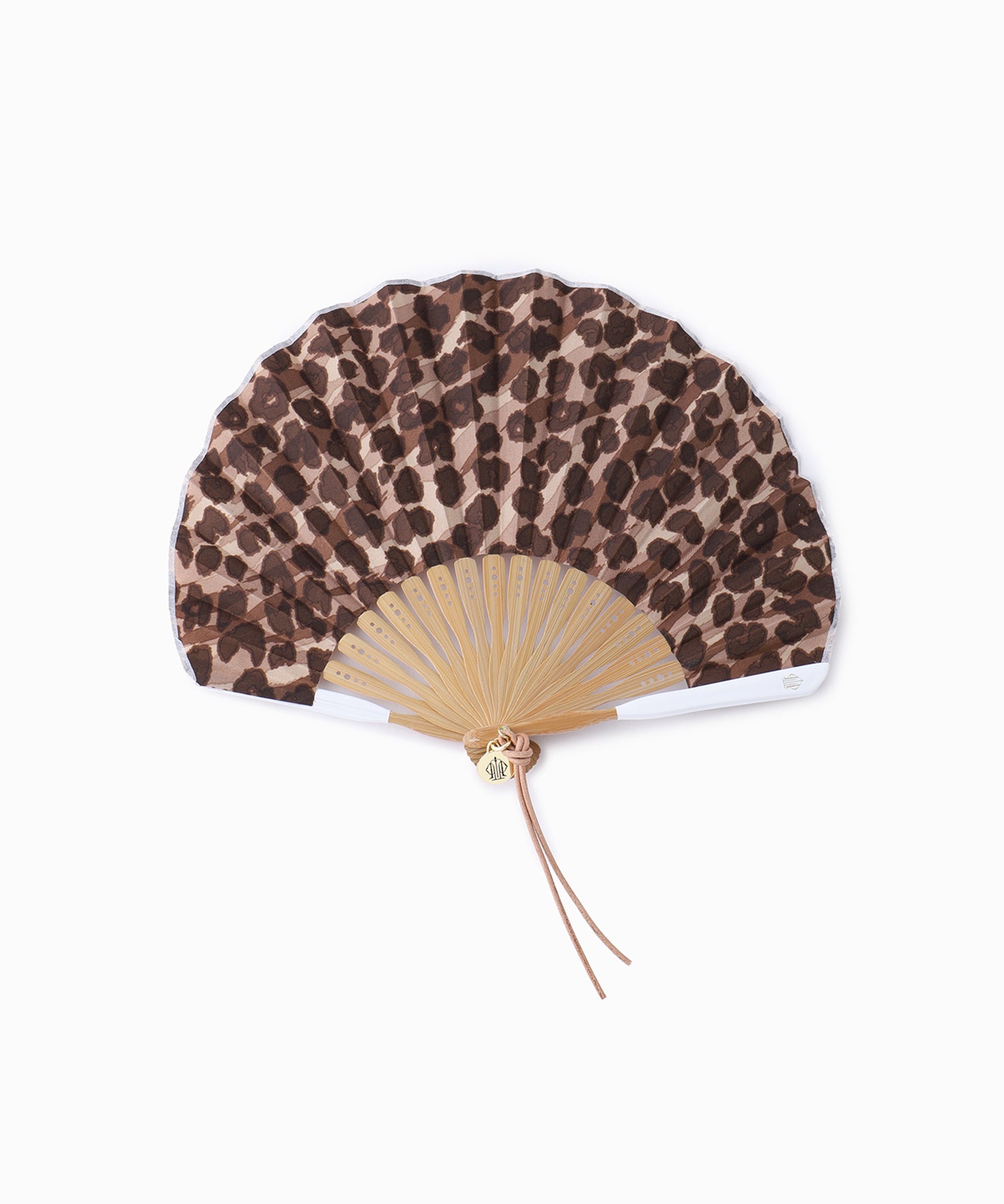 今回の別注アイテムは、コーディネートのスパイスになるヒョウ柄プリントの晴雨兼用傘や、異なる2種類のプリントスカーフを組み合わせたトートバッグ、ギフトにも最適なドット柄の扇子を別注いたしました。