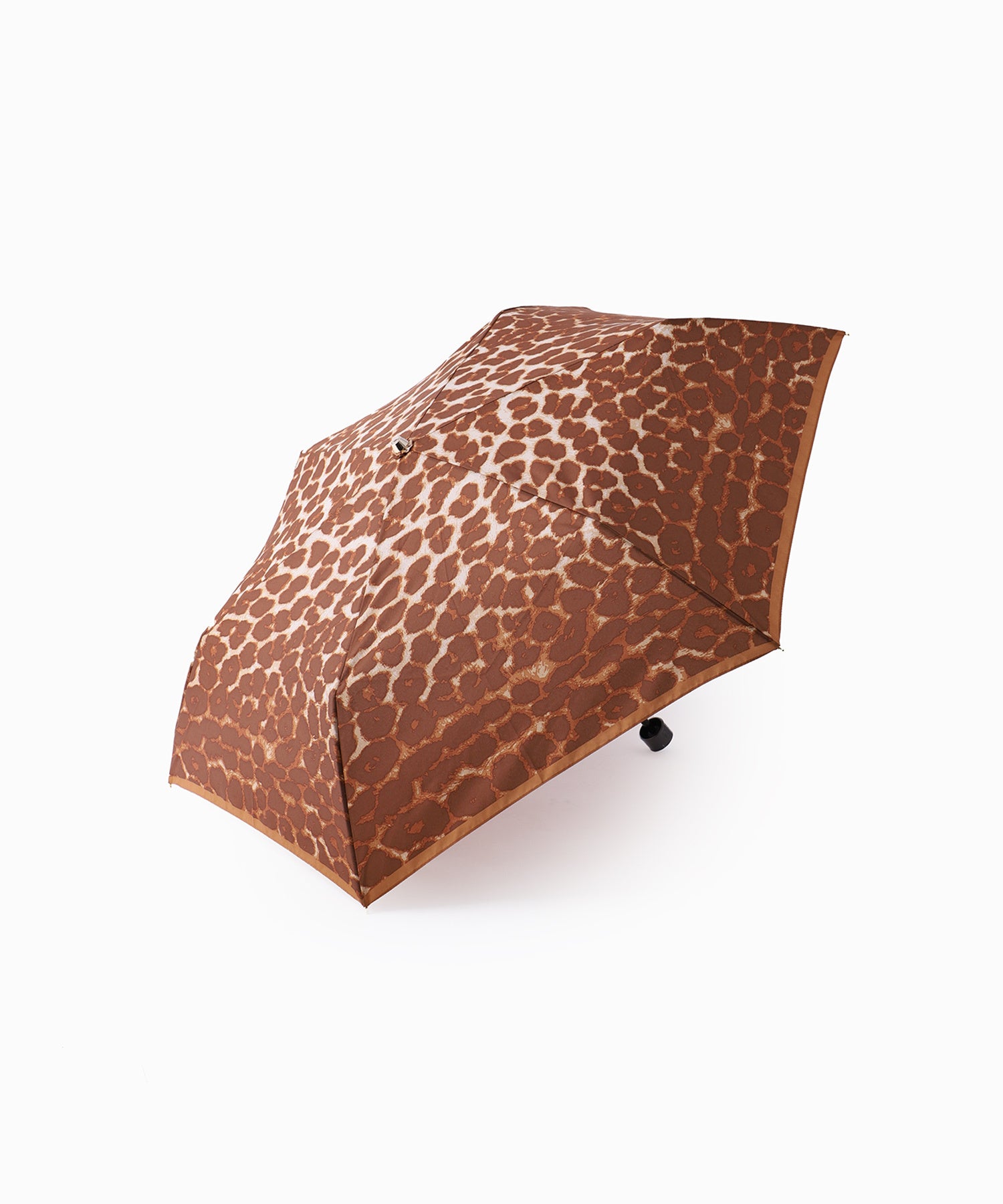 夏のコーディネートのアクセントなるレオパードプリントはマニプリの中でもずっと人気のある定番プリント。カバーにショルダーが付いた、持ち運びにも便利なタイプの晴雨兼用折りたたみ傘です。