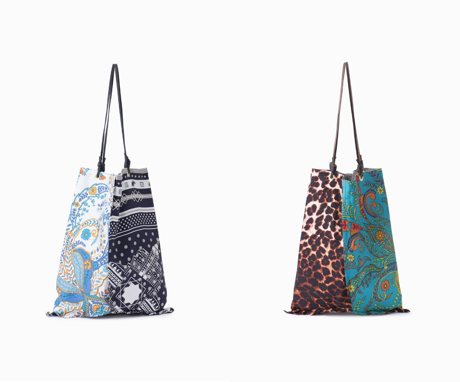 manipuriで人気のヒョウ柄プリントの晴雨兼用傘や異なる2種類のプリントスカーフを組み合わせたトートバッグなど、コーディネートのスパイスになるピモンテらしいアイテムを別注いたしました。