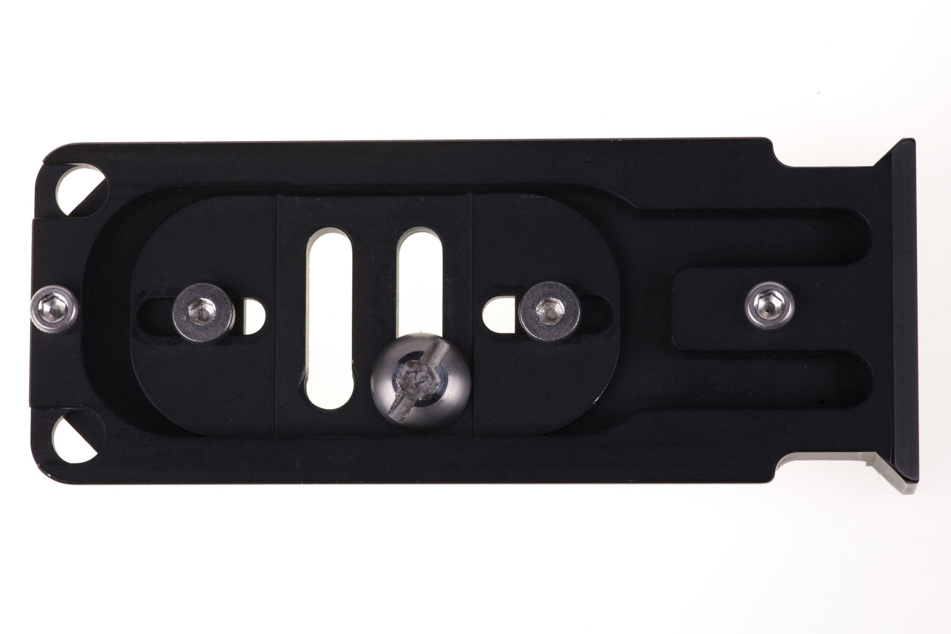 カメラの下に固定する、汎用タイプのアルカ互換ブラケットです。