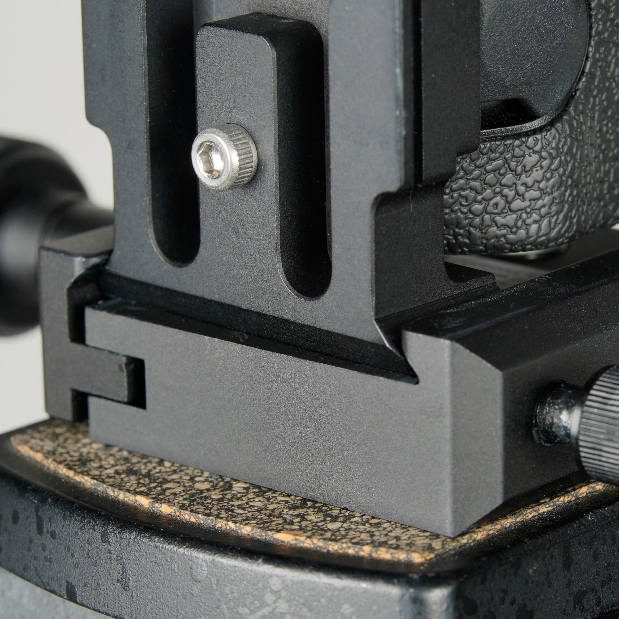 短辺にもアルカ互換のシュー形状を設けており、縦位置でも固定できます。