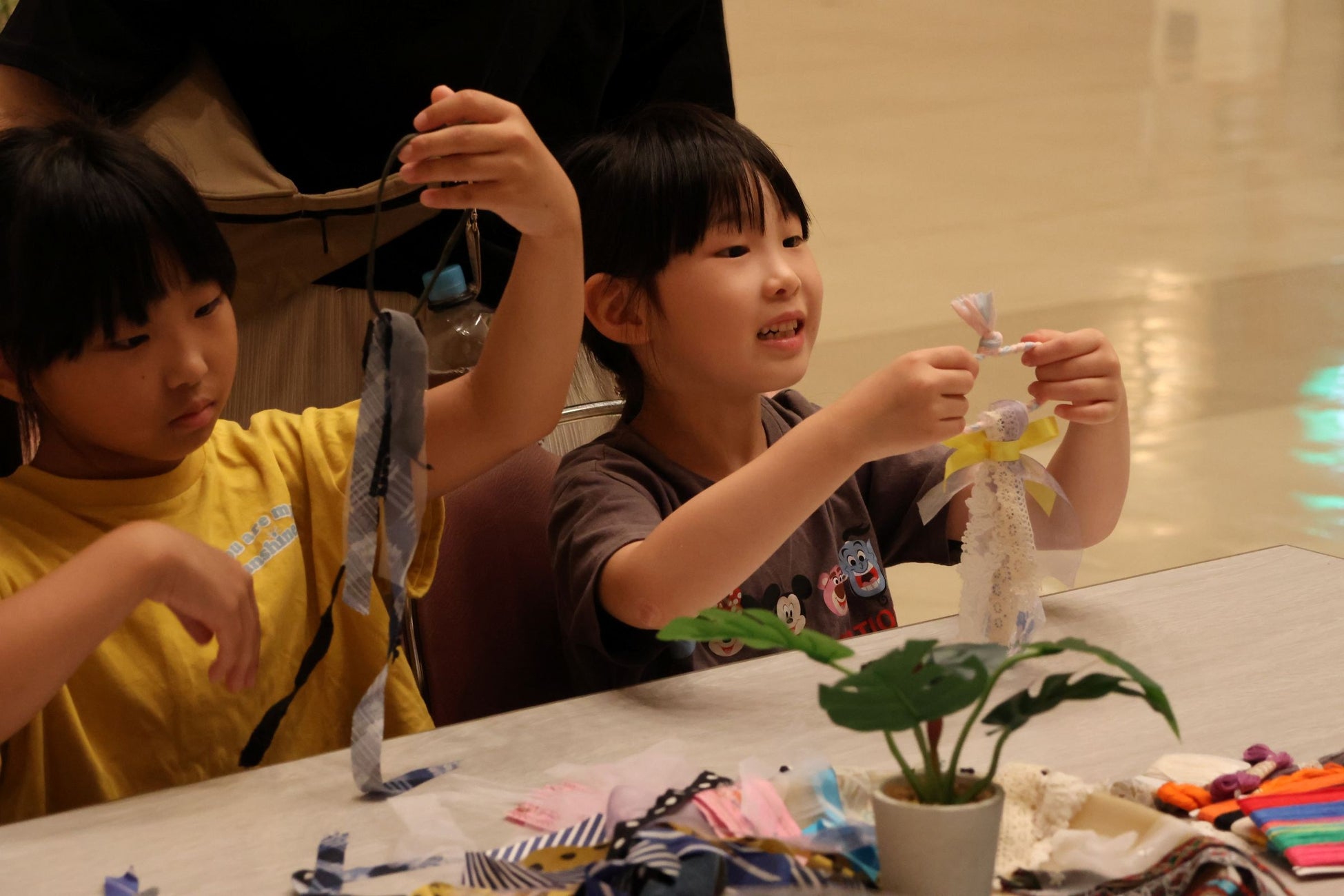 また、子供だちへのサステナブル啓発活動として、着なくなった服や修理の際に出るさまざまな歯切れを捨てることなく使用して、自分だけのオリジナルストラップや髪飾りを作るワークショップコーナー、「ようふくのたび」という物語を聞かせながら、地球環境問題を分かりやすく伝えるサステナブルセミナーのコーナーも開設しました。