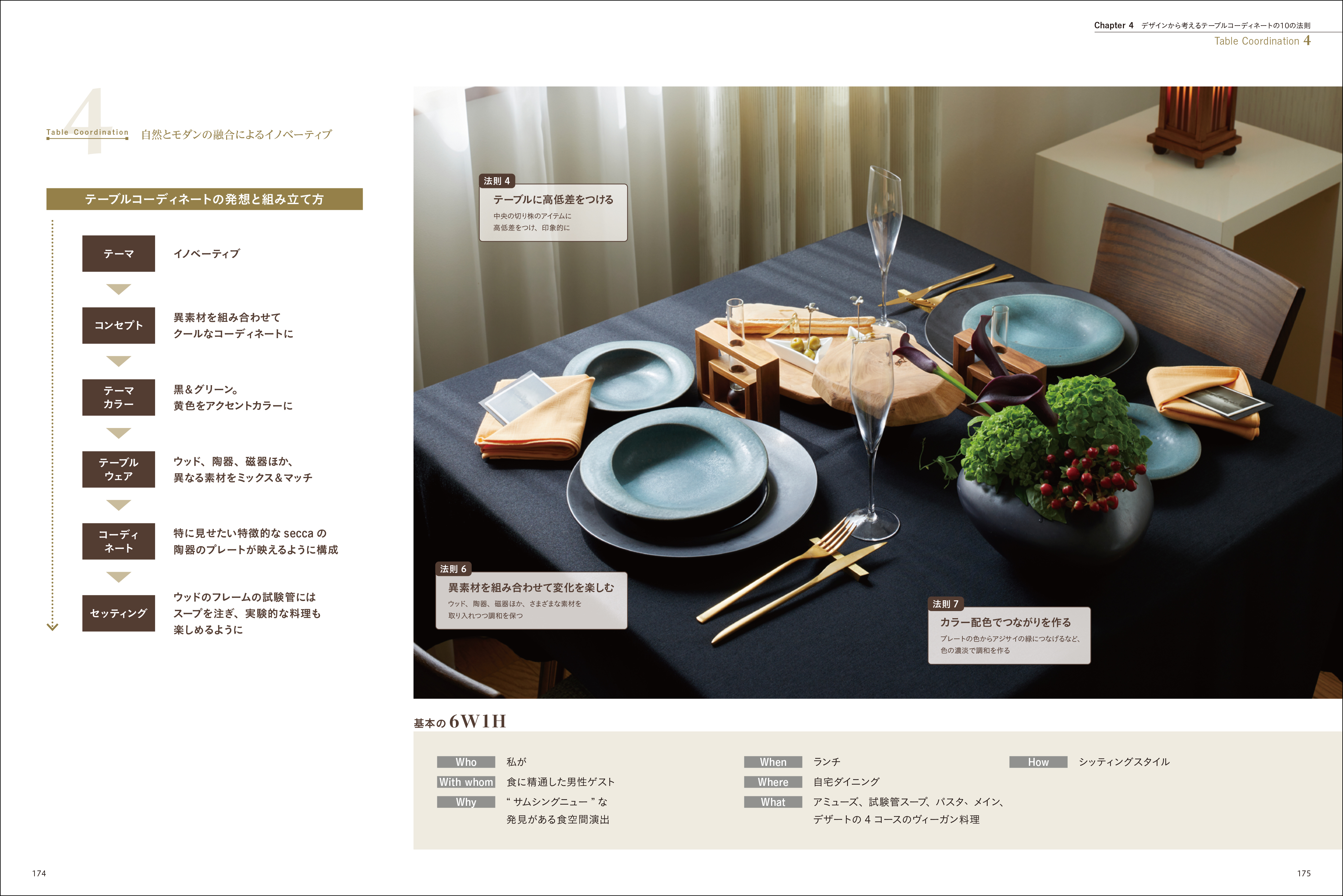 さらにテーブルコーディネートの作例では、構成する上で重要な「10の法則」と、発想の筋道についても解説。