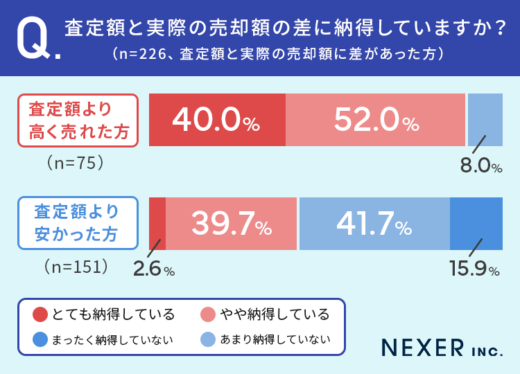 【査定額より安かった】査定額と実際の売却額の差に「とても納得している」その理由は?