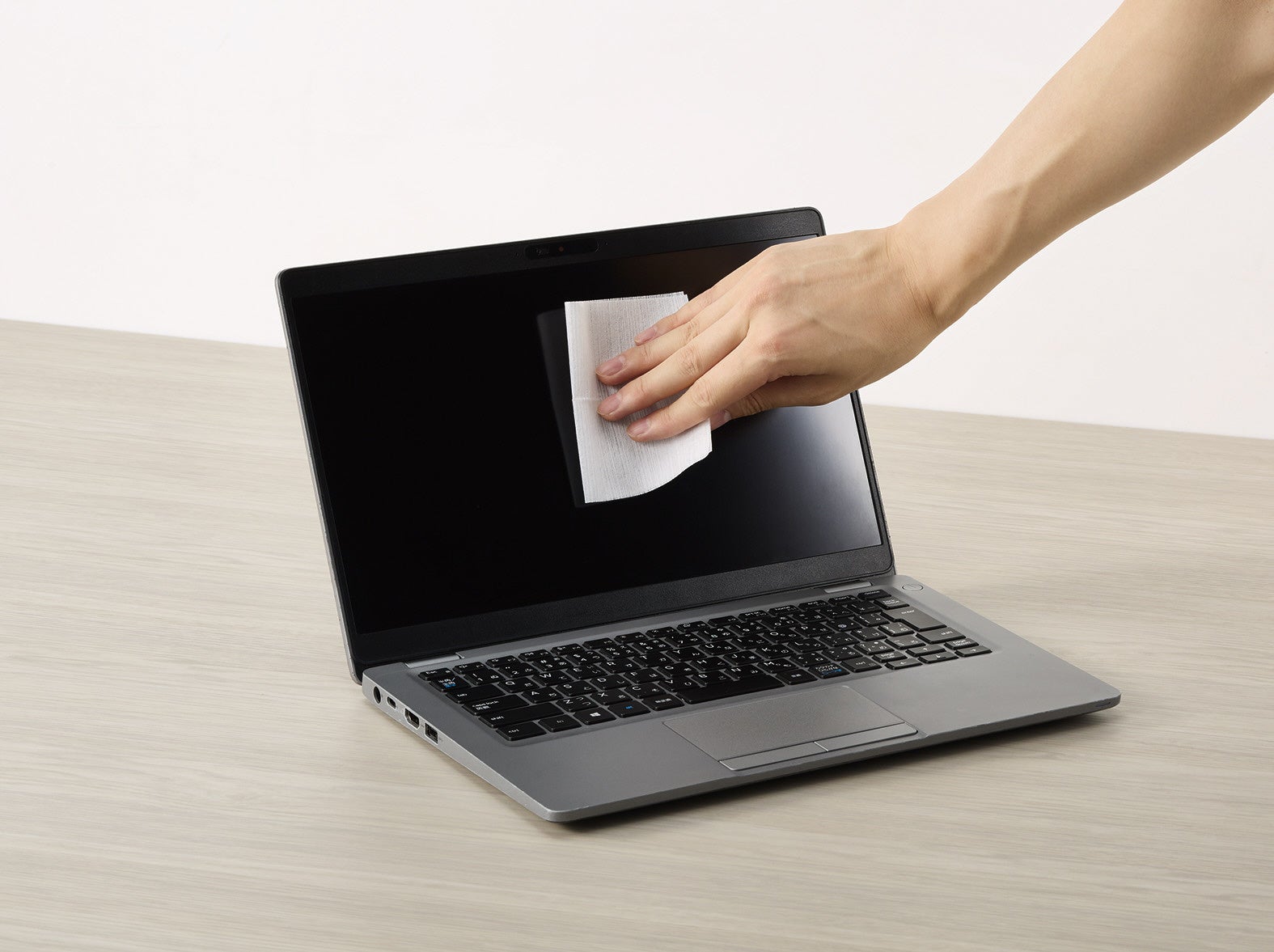 微細繊維入り不織布を採用したドライタイプの液晶クリーナーシートです。ウェットシートのようにパソコンやスマートフォンなどの液晶を濡らすことがないので、二度拭きや乾燥待ちの必要がなく、軽く拭くだけで汚れを除去できます。ボトルタイプで起こりがちな、取り出し時の引っかかりを解消する箱タイプのパッケージを採用。S・M・Lの3サイズ展開で、スマートフォンからPCモニター、窓ガラスまで、拭き取る対象物のサイズに合わせて使い分けが可能です。