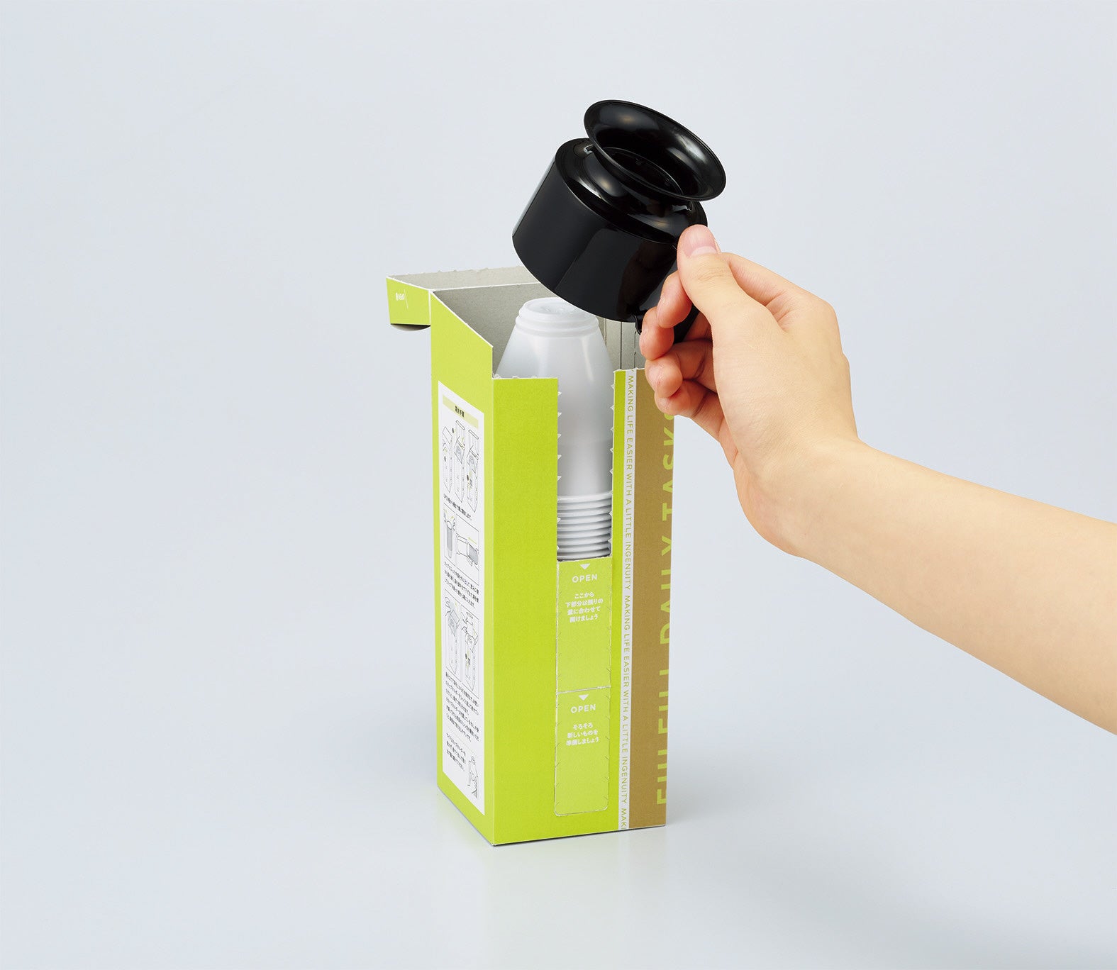 飲み口に触れずにセットできる構造で、衛生的に使えるインサートカップです。箱ごとストックケースとして使用できるので、補充や管理の手間を軽減します。3段階で切り取れるミシン目入りで、量が減ってもセットしやすく、買い替えの時期も分かりやすい仕様です。