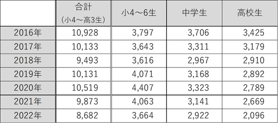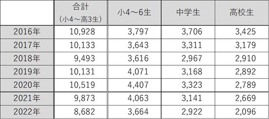 ※2022年調査のデータを使用して分析した。サンプル数は、小4-6生3,664名、中学生2,922名、高校生2,096名。
