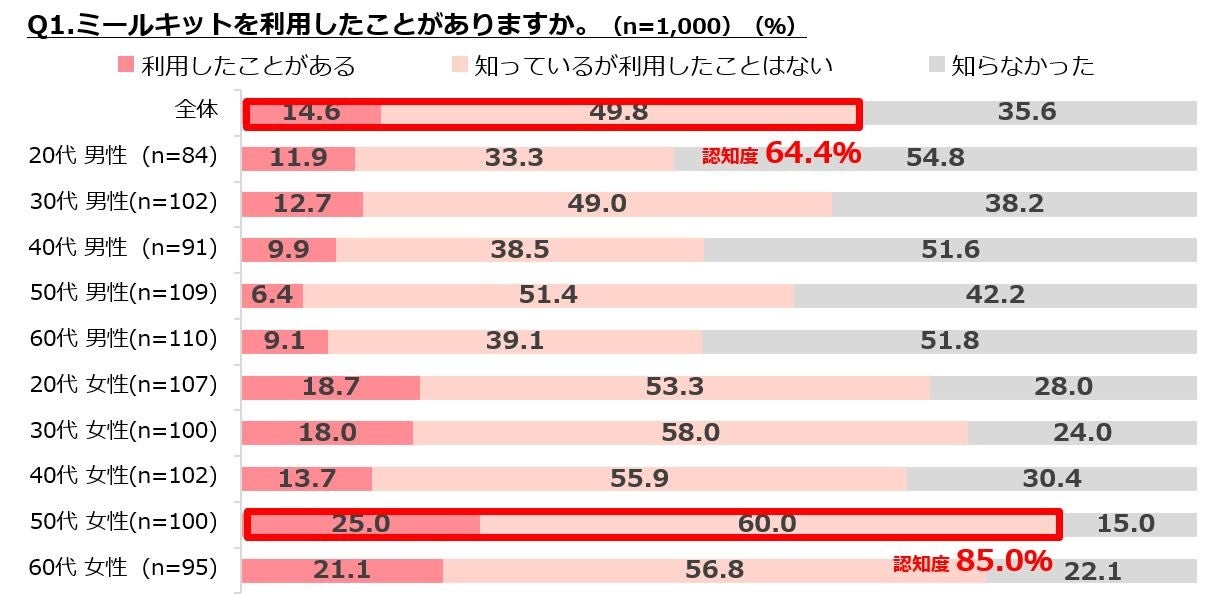 ・利用経験ありは15%、特に50代女性は4人に1人が利用経験あり。認知度は6割超。