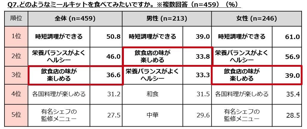 ・食べてみたいものは「時短調理ができる」「栄養バランスがよくヘルシー」「飲食店の味が楽しめる」。