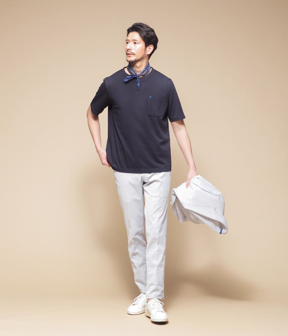 今回の特集では、BERKLEYが今シーズン展開する様々なカットソーの中から、“この夏着たいカットソー2選”をご紹介。「ALBINI」のコットン素材を使用した上品な「ポロシャツ」と「Tシャツ」をスタイリングと共にご紹介します。1枚着としてもインナーとしても着用可能で、コーディネート次第で仕事の日も休日も楽しめる、まさに自由自在なアイテムです。
