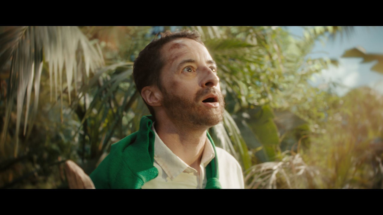 今回のCMでは、新育成シナリオ「無人島へようこそ -DESIGN YOUR ISLAND-」の舞台となっている無人島にちなんで、ルメールさんが無人島に漂着するシーンから展開されます。まるで映画のワンシーンのような緊張感漂うルメールさんの無人島生活シーンから一変…! 森の茂みを抜けた先でルメールさんが目にしたのは開拓された街と…巨大な金の武豊像!?