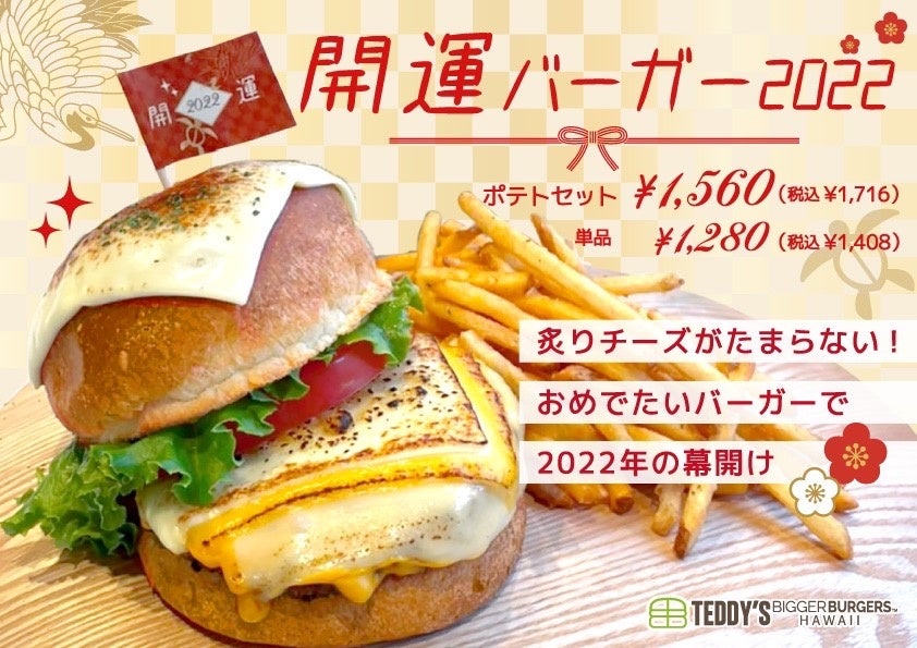 おめでたいバーガーでHappyな2022年の幕開け! 炙りチーズがたまらない「開運バーガー2022」、ハワイ発「テディーズビガーバーガー」表参道店より新登場!