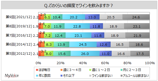 マイボイスコム株式会社(東京都千代田区、代表取締役社長:高井和久)は、インターネット調査を中心に提供している伊藤忠グループのリサーチ会社です。この度、9回目となる『ワイン』に関するインターネット調査を2021年12月1日~5日に実施し、9,937件の回答を集めました。調査結果をお知らせします。