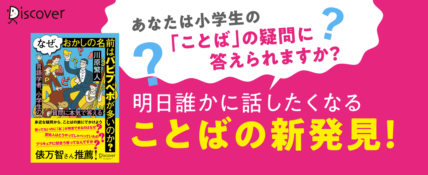 株式会社ディスカヴァー・トゥエンティワン(本社:東京都千代田区、取締役社長:谷口奈緒美)は2023年7月21日に『なぜ、おかしの名前はパピプペポが多いのか?言語学者、小学生の質問に本気で答える』(川原繁人・著)を刊行しました。