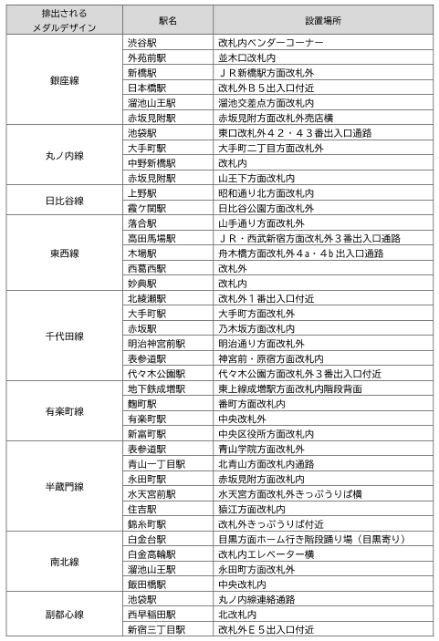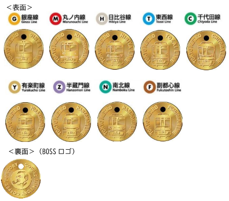 を購入すると、東京メトロ各路線の車両がデザインされたオリジナルメダル1枚が釣銭取り出し口からプレ