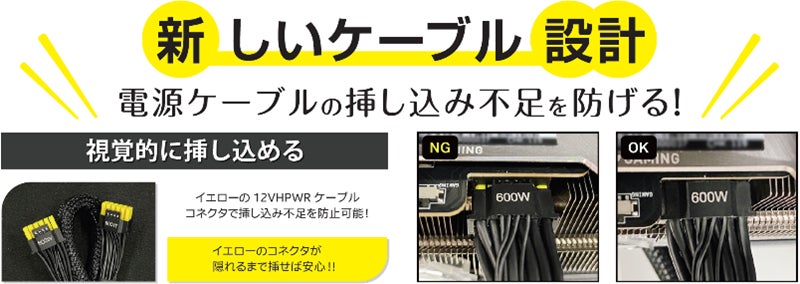 ●16ピン(12V-2x6)コネクターをイエローにすることで、挿し込み具合が一目でわかる安心設計