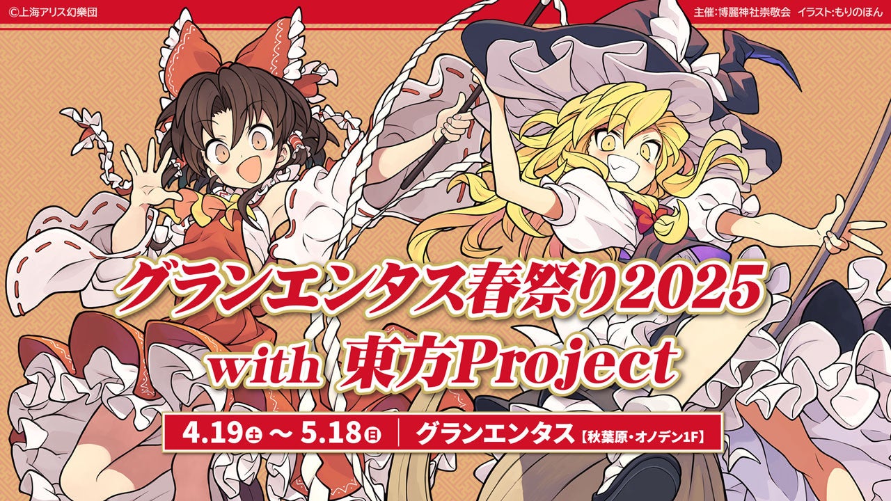 秋葉原オノデン1Fのイベントスペース「グランエンタス」にて、2025年4月19日(土)~5月18日(日)の期間《グランエンタス春祭り2025 with 東方Project》の開催が決定。