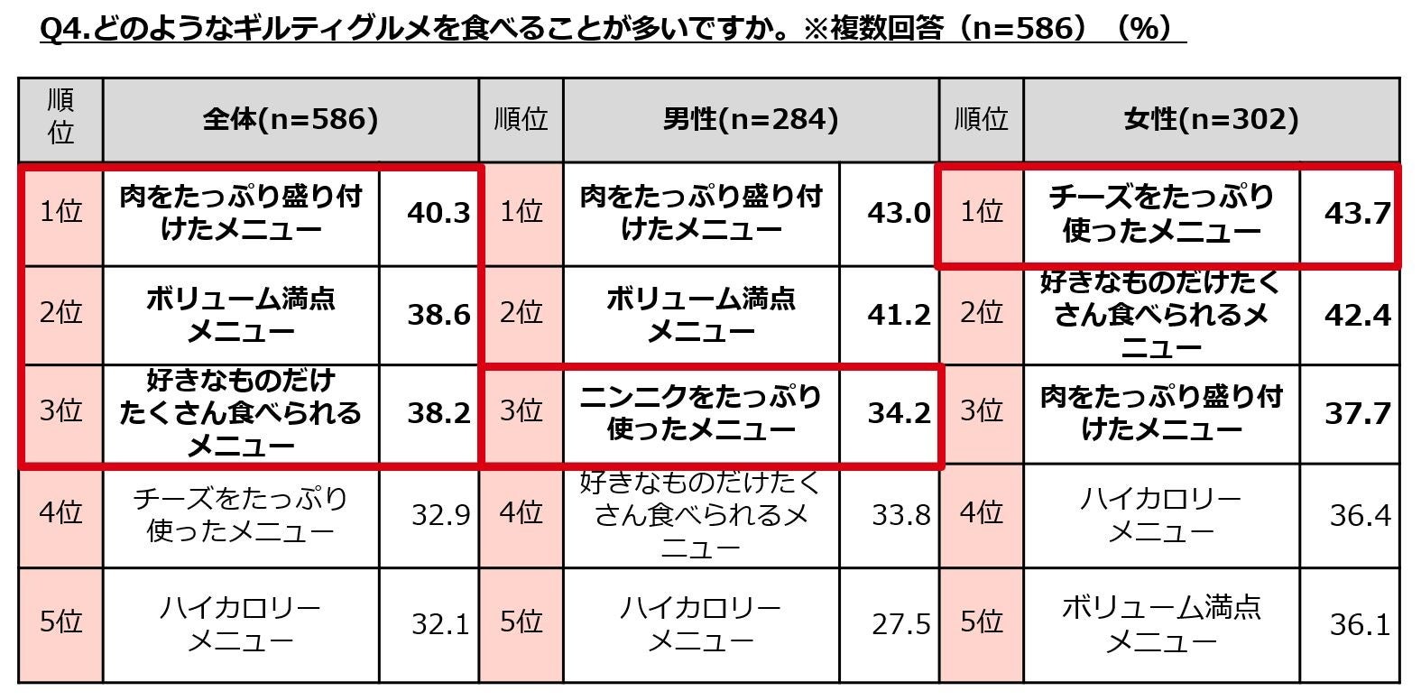 ・食べることが多いギルティグルメの特徴は「肉をたっぷり盛り付けた」「ボリューム満点」「好きなもの