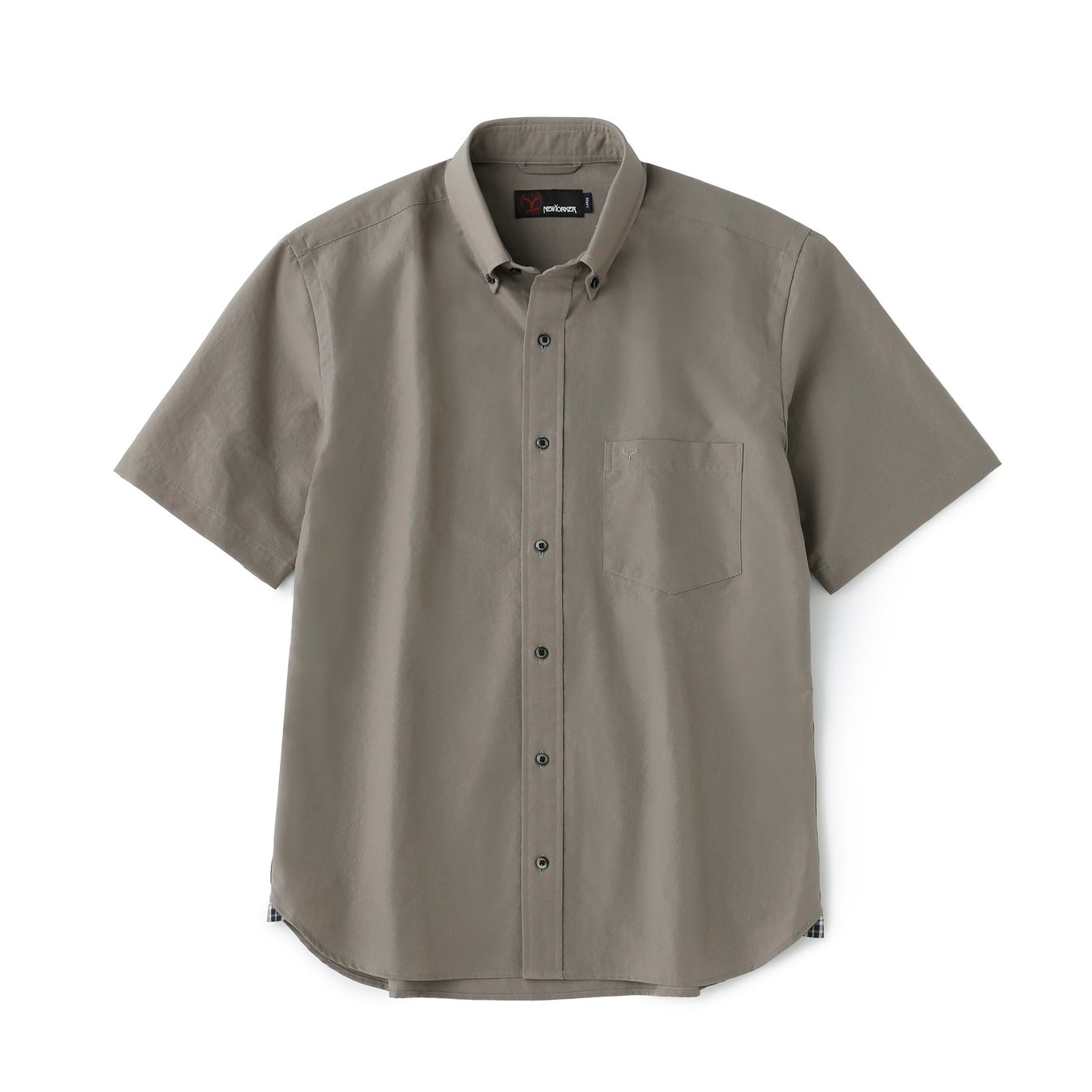 非常に細かい通気孔があるリップストップの生地を採用したボタンダウンカラーの半袖シャツ。2wayのストレッチが動きやすさをサポートし、通気孔のおかげで汗ばむ日も快適な着心地を実現。程よくゆったりとしたシルエットは、カットソーをレイヤードすることで幅広いスタイリングが愉しめます。裾脇のガゼットにはNYハウスタータンを使用。胸ポケットにはチームのアイコンである「Antler」を生地と同色の刺繍で表現しました。