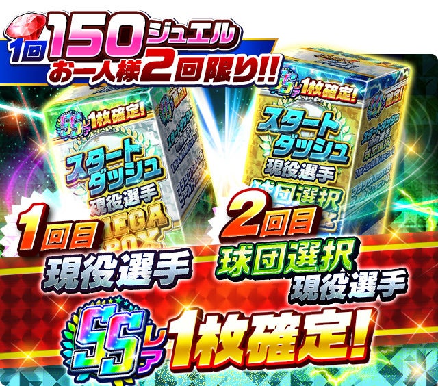 チュートリアル完了後にもらえるカード3枚入りパックから登場する選手が、期間中お気に入り球団のSSレア選手のみになります。
