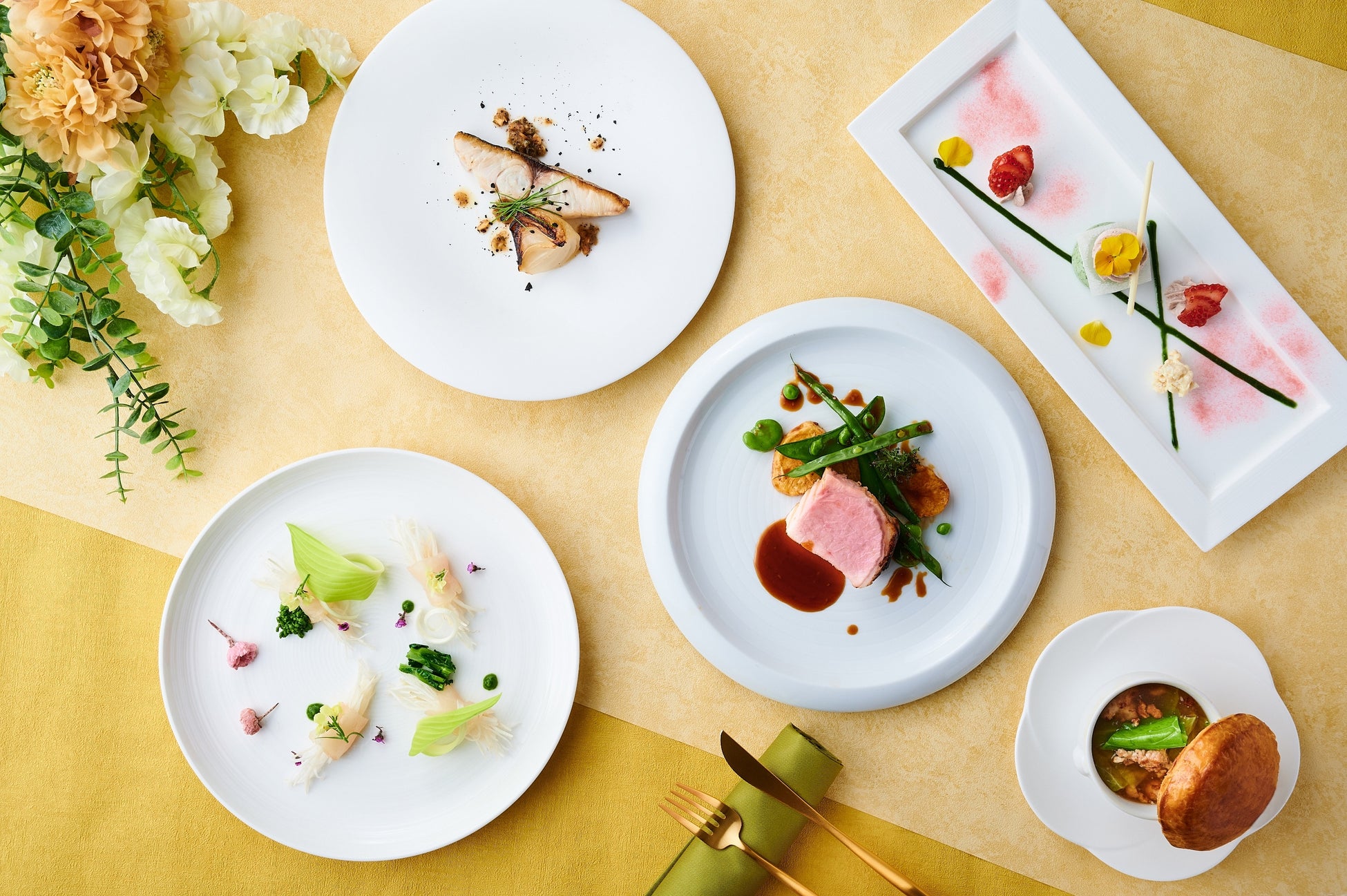 大宮エリア唯一の「恋人の聖地サテライト」※に認定されている結婚式場「大宮璃宮」。館内にある「カフェ&レストラン 四季庭」は、四季折々の自然に囲まれた埼玉屈指の上質レストランです。「美しい日本の四季を料理でも感じていただきたい」という思いから、地元・埼玉県をはじめ日本各地の旬の食材を使用し、フレンチの技法で表現したフレンチジャポネを提供しています。