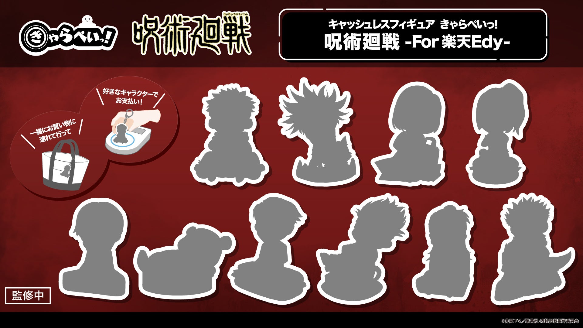 株式会社CyberZ(本社:東京都渋谷区、代表取締役社長:山内隆裕)の連結子会社、株式会社eStream(本社:東京都渋谷区、代表取締役社長:高井里菜)は、当社が手掛けるコンビニなどで支払いに使える持ち運びに便利なキーホルダータイプのフィギュアブランド『きゃらぺいっ!』に、TVアニメ『呪術廻戦』より「虎杖悠仁」、「伏黒恵」、「釘崎野薔薇」、「禪院真希」、「狗巻棘」、「パンダ」、「七海建人」、「五条悟」、「夏油傑」、「宿儺」が登場することが決定いたしました。発売日などの詳細は随時発表いたします。