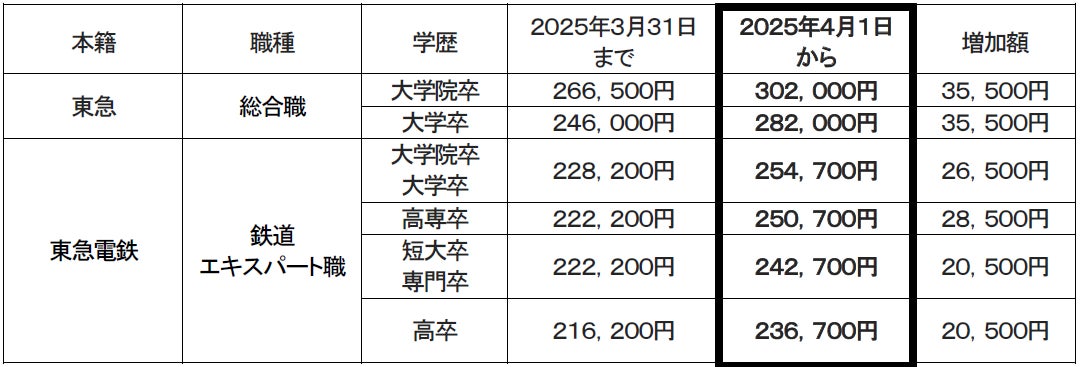 2025年4月より東急・東急電鉄全社員を対象に基本給を一律10,500円引き上げました。