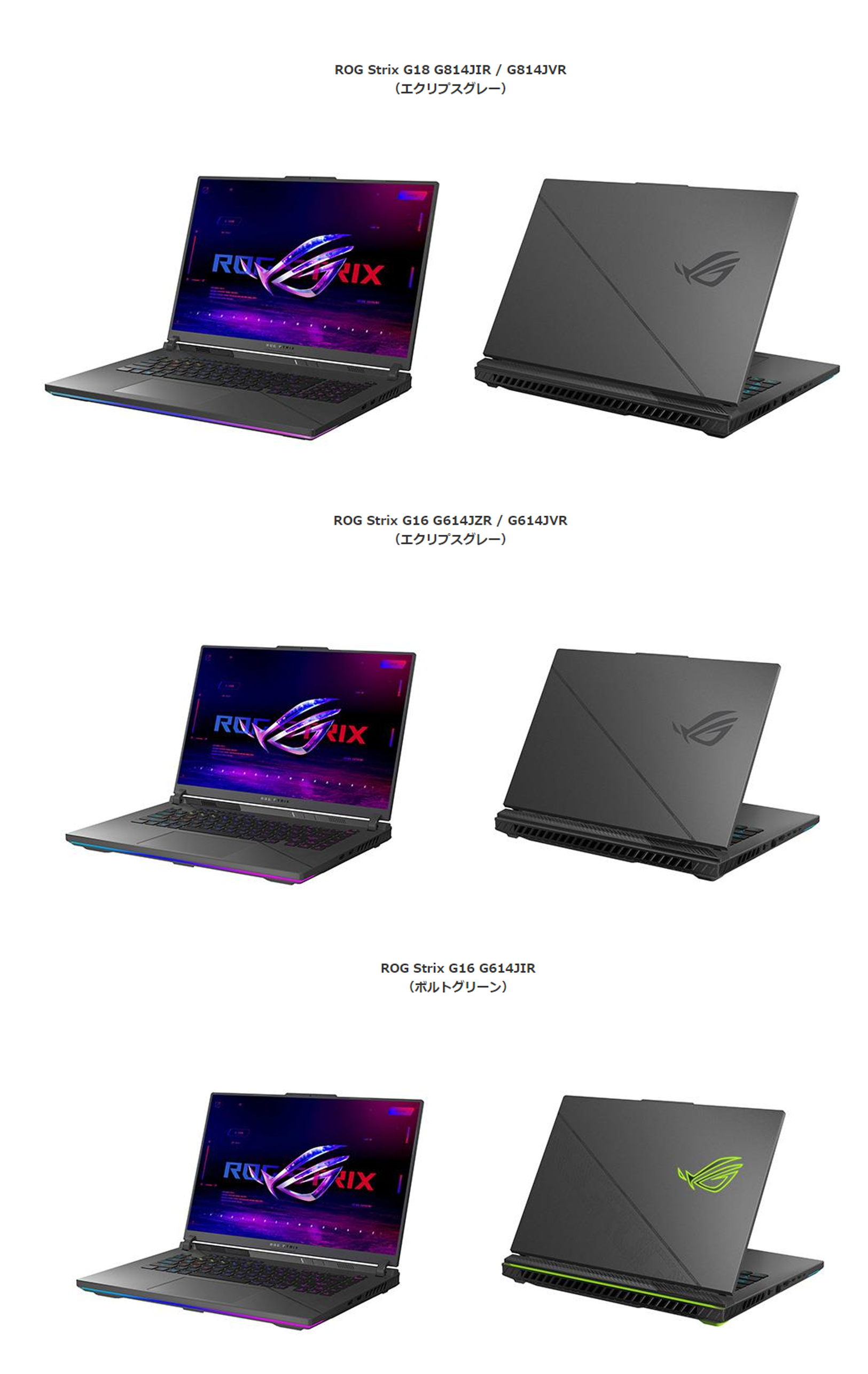 ROG Strix G16 G614:https://rog.asus.com/jp/laptops/rog-strix/rog-strix-g16-2024/