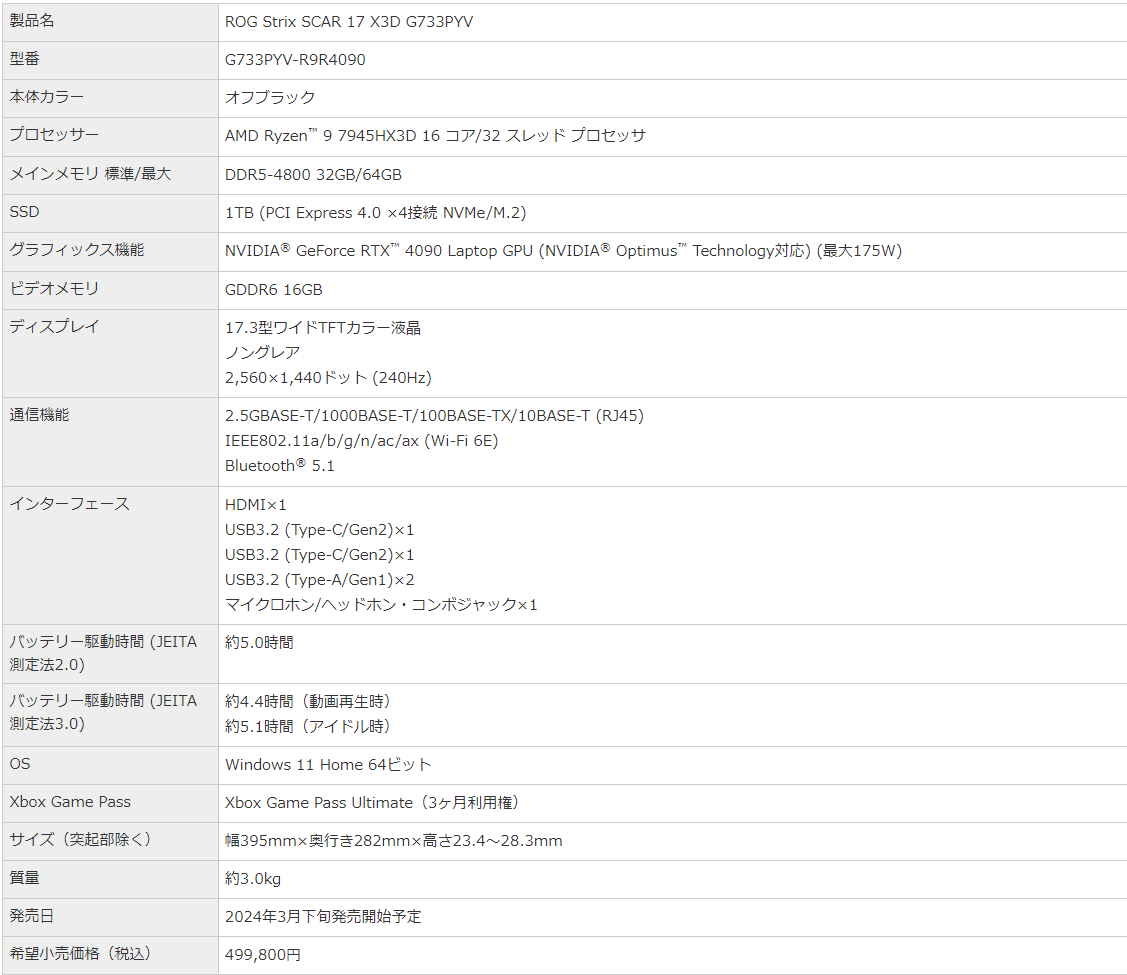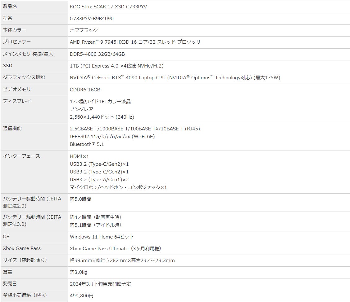 製品詳細:https://rog.asus.com/jp/laptops/rog-strix/rog-strix-scar-17-x3d-2023/