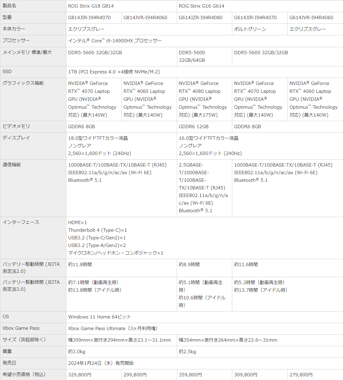 ROG Strix G18 G814:https://rog.asus.com/jp/laptops/rog-strix/rog-strix-g18-2024/