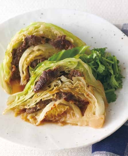 きゅうりチャンプルー、キャベツと牛肉のはさみ蒸し煮、キャベツと鶏肉のトマト煮、白菜と帆立てのクタクタ煮、肉巻きアスパラの照り焼き、ねぎのすき焼き、里芋のそぼろ煮など