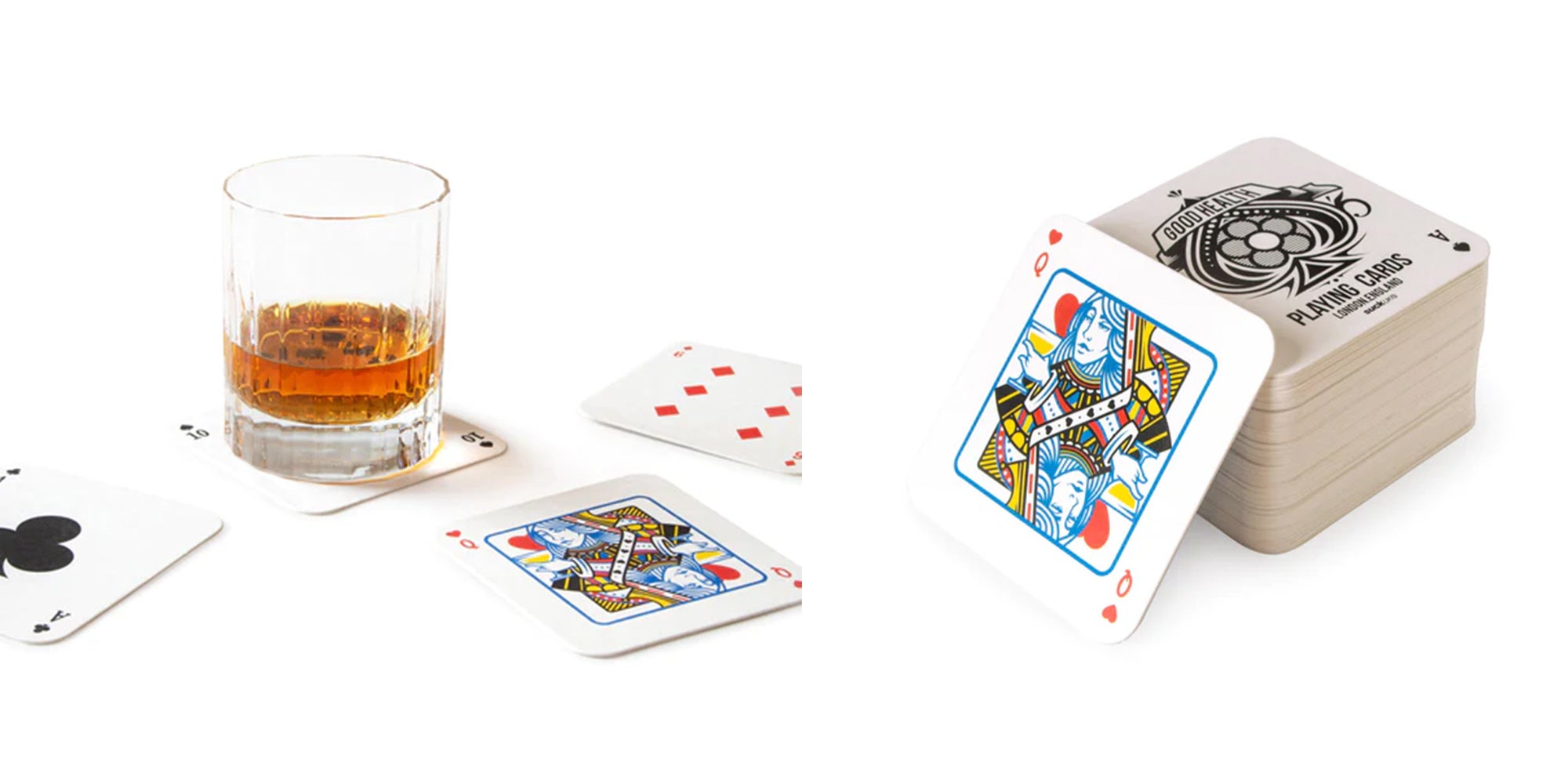 54枚のトランプを表裏にプリントした紙製のカクテルコースターでパーティーを演出します。カードゲームはもちろん、各カードには飲み物のモチーフが隠されているのでパーラーゲームとしても楽しめます。