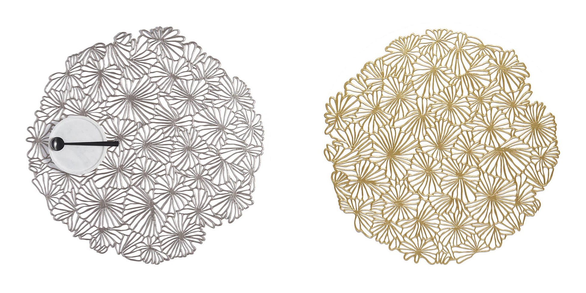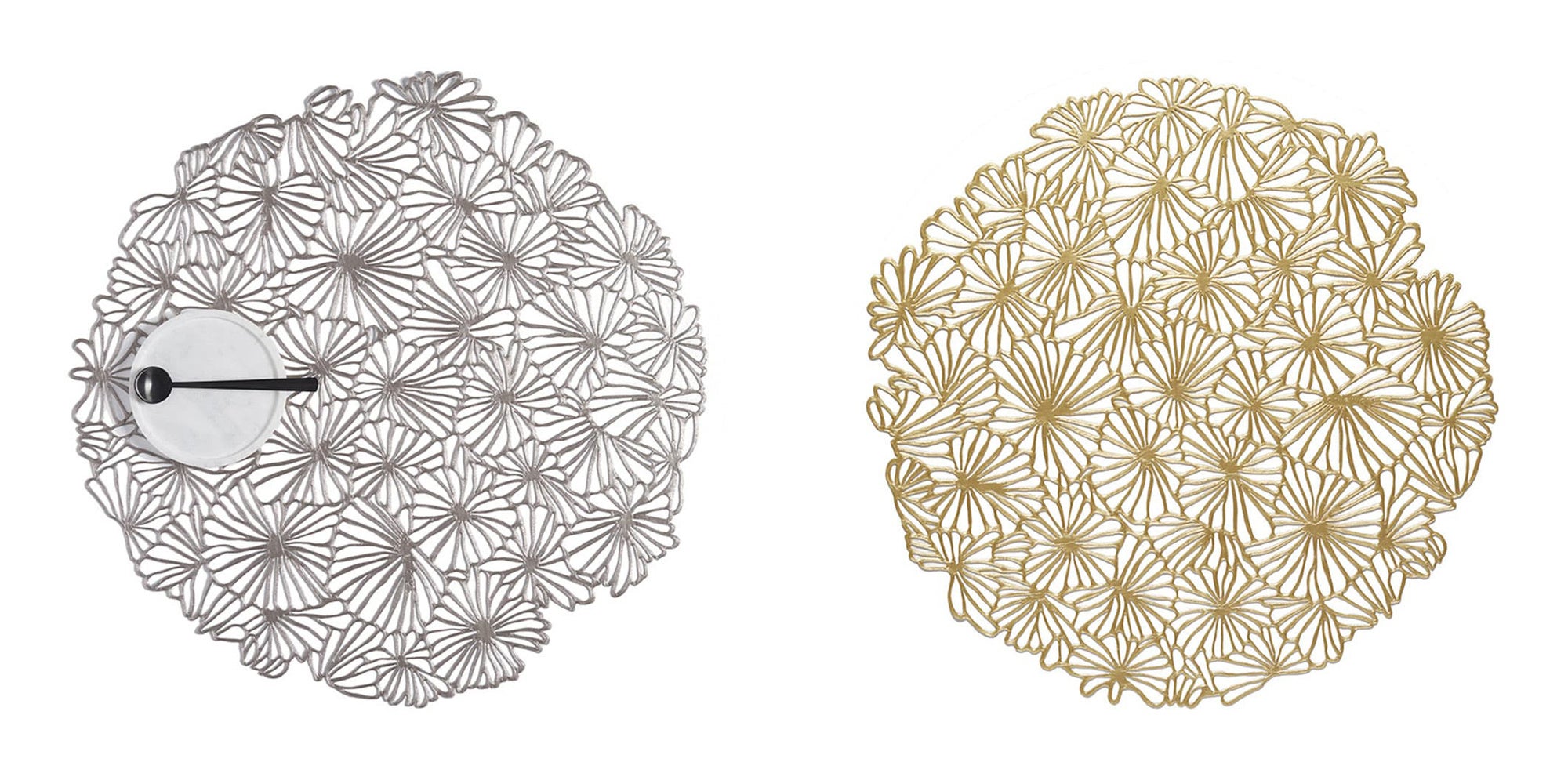 デイジーの花束を上から見ると、この透かし模様のプレースマットがあるかのような錯覚を起こします。ディナープレートや花瓶を置いてダイニングテーブルを美しく演出します。