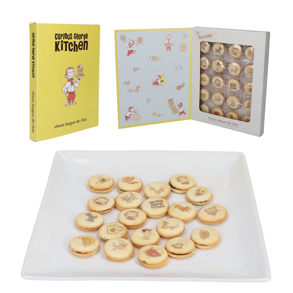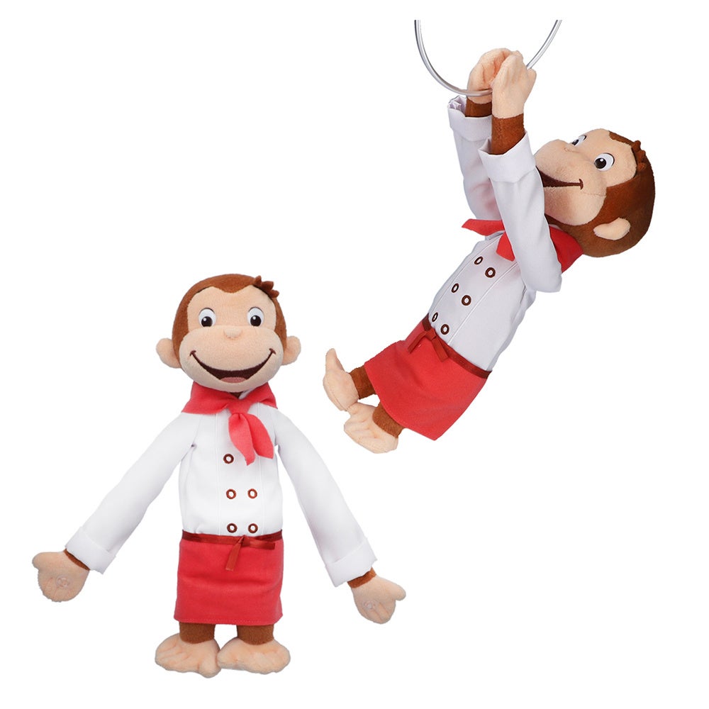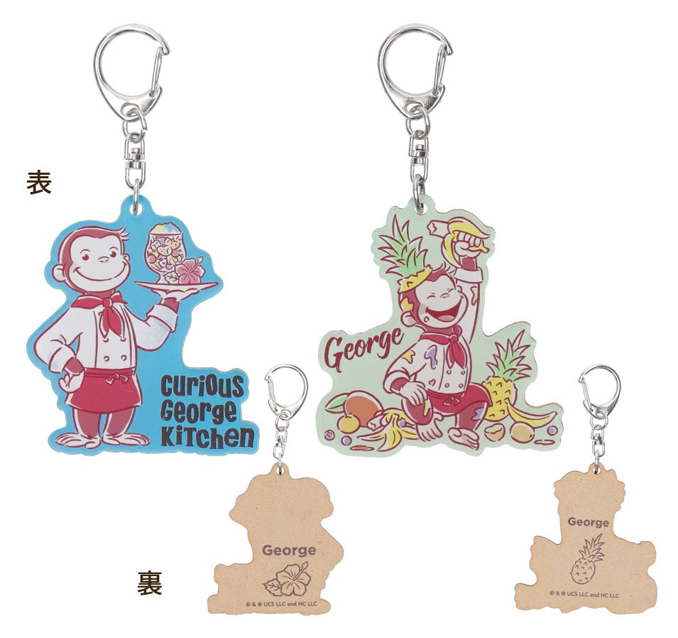 人気の店頭装飾アイテムがついに商品化!国産ひのきを使用した「バナナスタンド」、ユニセックスで着用できるスタイリッシュな色味の「Tシャツ」「エプロン」「キャップ」のほか、セカンドシーズン限定の書き下ろしアートを使用した「キーホルダー」などが発売になります。さらに、会期中にも新たな商品が追加発売の予定です。ボタンで両手をつなげてぶら下げられる、コックコートを着たジョージの「シェフジョージ ぶらぶらぬいぐるみ」、メニューブックがそのままお菓子になったような「メニューブックチョコラングドシャ」、いずれも詳細な発売日はCurious George Kitchen公式ツイッターにてお知らせいたします。