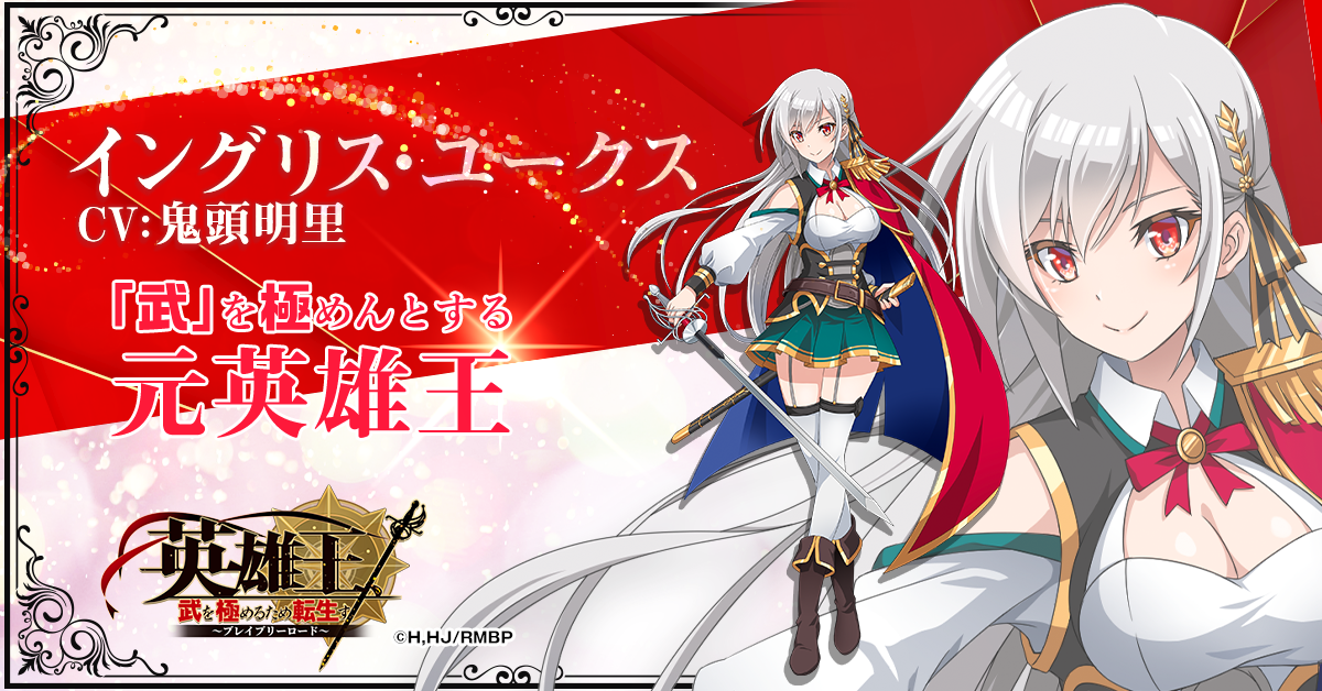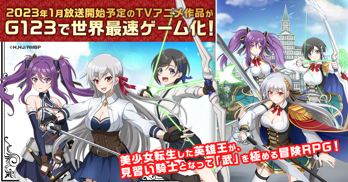 「ブレロド」は、2023年1月にTVアニメ化が決定している『英雄王、武を極めるため転生す 〜そして、世界最強の見習い騎士♀〜』を題材に、イングリス(CV:鬼頭明里)を始めとした作品に登場する美少女見習い騎士たちの冒険活劇を楽しめる、迫力満点のRPGゲームとなっています。イングリスたちとともに果てなき「武」を極めましょう。