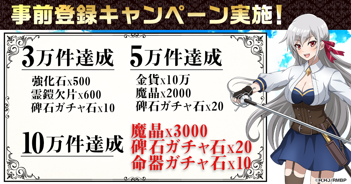 事前登録の参加人数に応じて、サービス開始時に豪華アイテムを全員にプレゼントいたします。