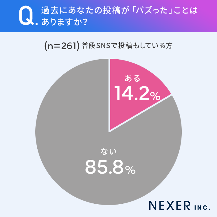 14.2%の方が過去の投稿が「バズった」ことが「ある」と回答しています。