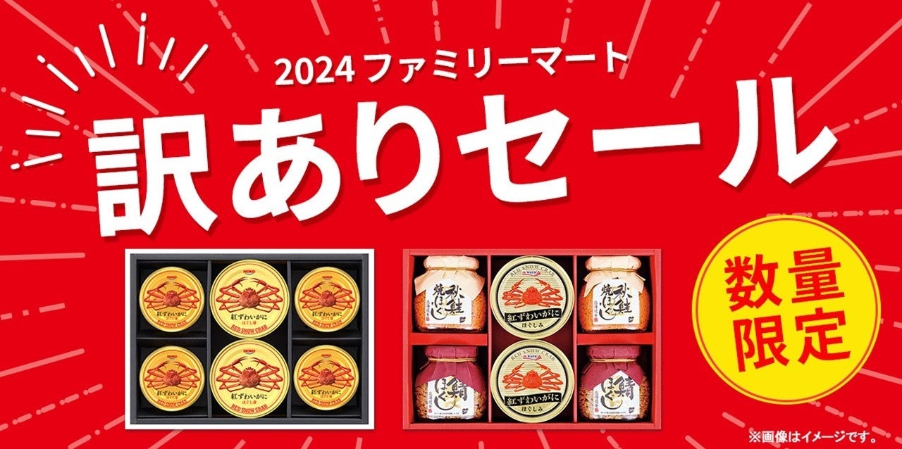このたび、ファミリーマートギフトネット申込サービスにおいて、お中元ギフトに続き、お歳暮の余剰在庫商品の割引きセールを実施いたします。いずれの商品も販売元希望小売価格から30%~50%OFFとなっており、最大半額となるなど大変「おトク」にお求めいただけます。