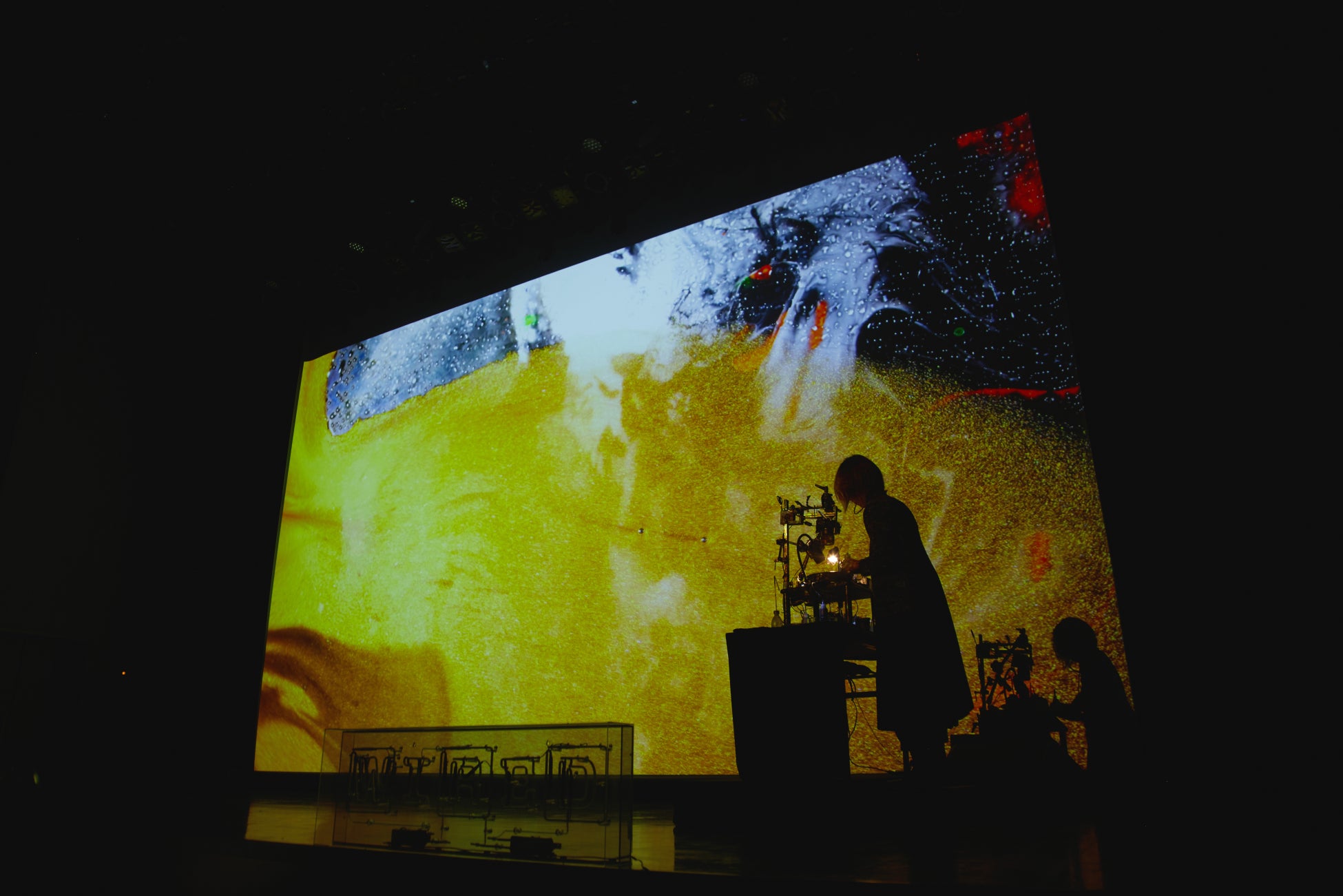 画家の中山晃子がライブパフォーマンスを披露。独自に確立した「Alive Painting」という手法を用いて、リアルタイムに色彩と映像、音楽が融合した圧巻のパフォーマンスを披露しました。