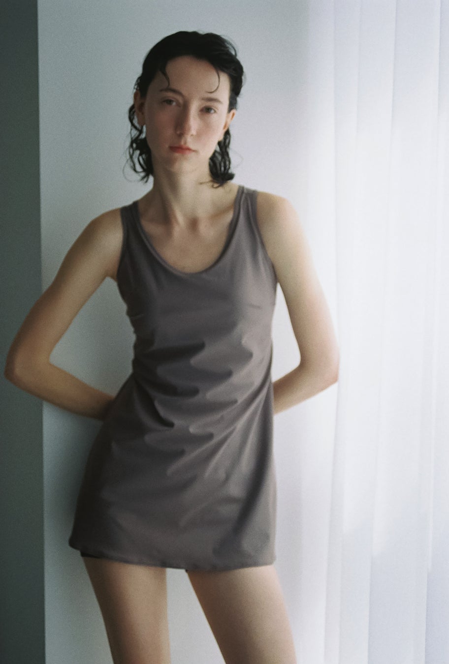 ミニマルデザインのワンピーススイムウエア。着心地の良いジャージー素材でインナーボトム付き。同素材のボレロを組み合わせると日除け効果を維持できます。