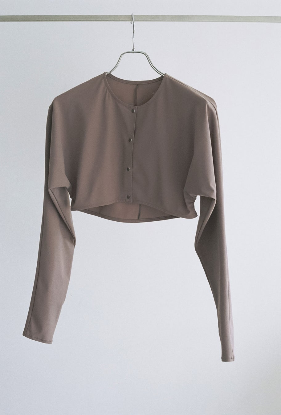リサイクルナイロン糸を使用した環境配慮型素材を用いたボレロ。ジャージー素材で着心地がよく、ファッションアイテムとしても着用いただけます。